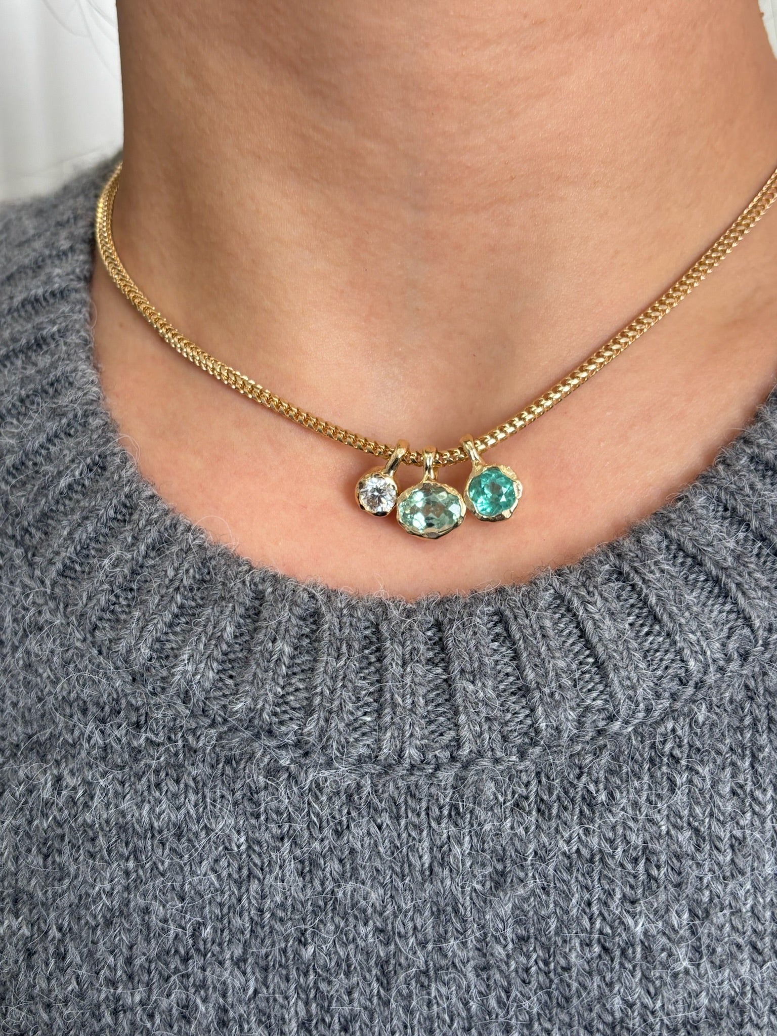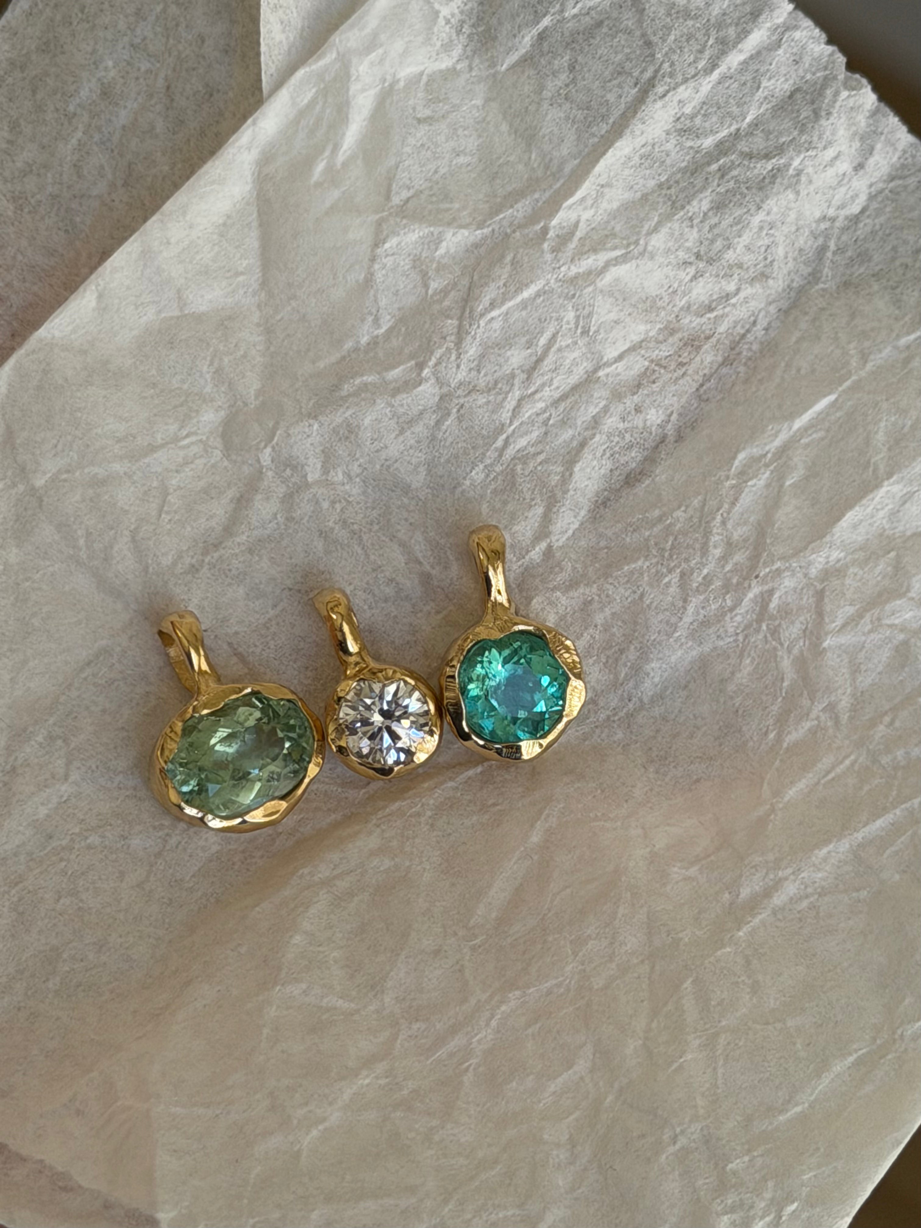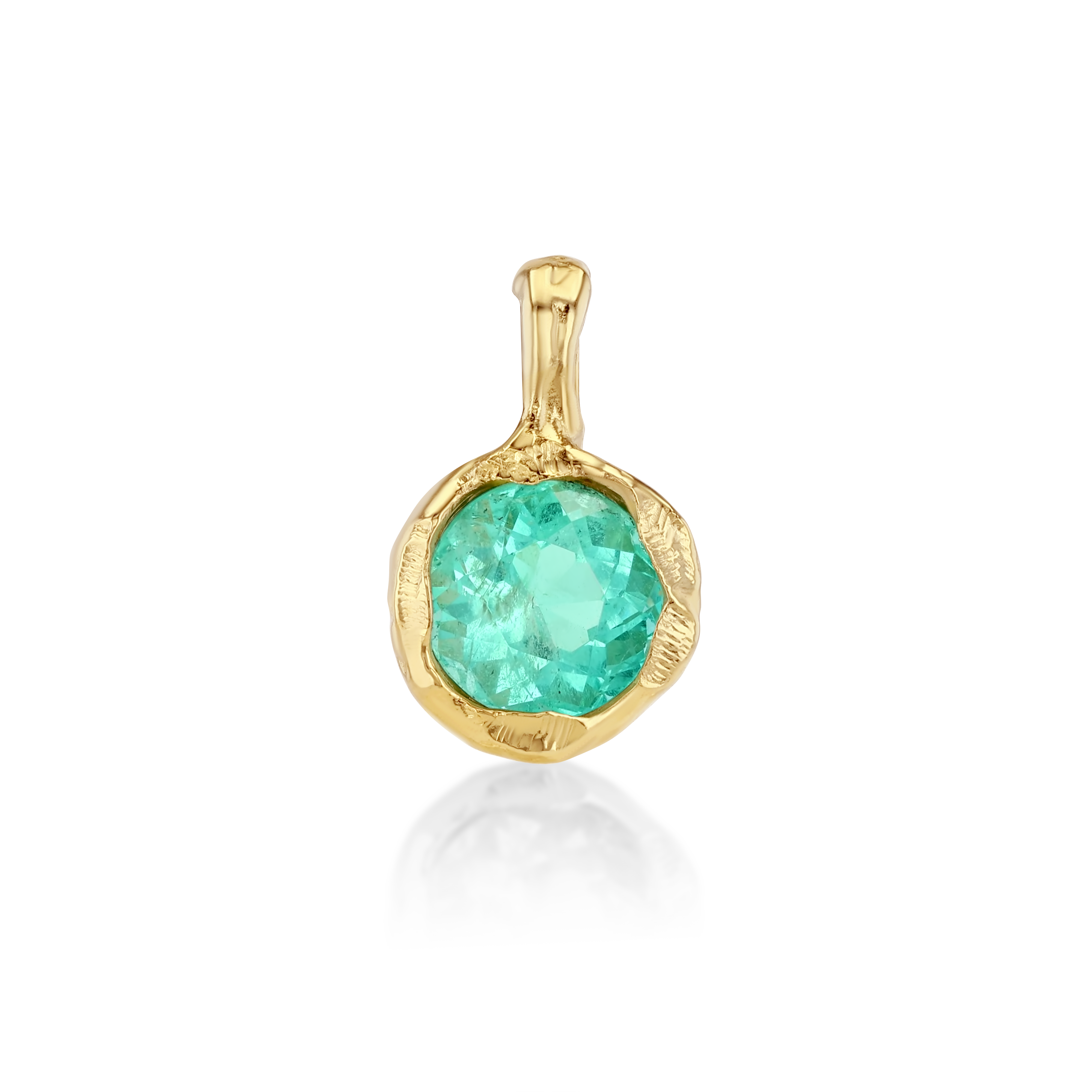 Part of our Golden Hour collection, this one of one charm features a hand-selected vivid 1.58ctw Minty Green Emerald set in hammered 14k gold. Each piece is individually finished for a soft, light-catching surface — designed to feel personal, lived in, and uniquely yours. No two are the same.