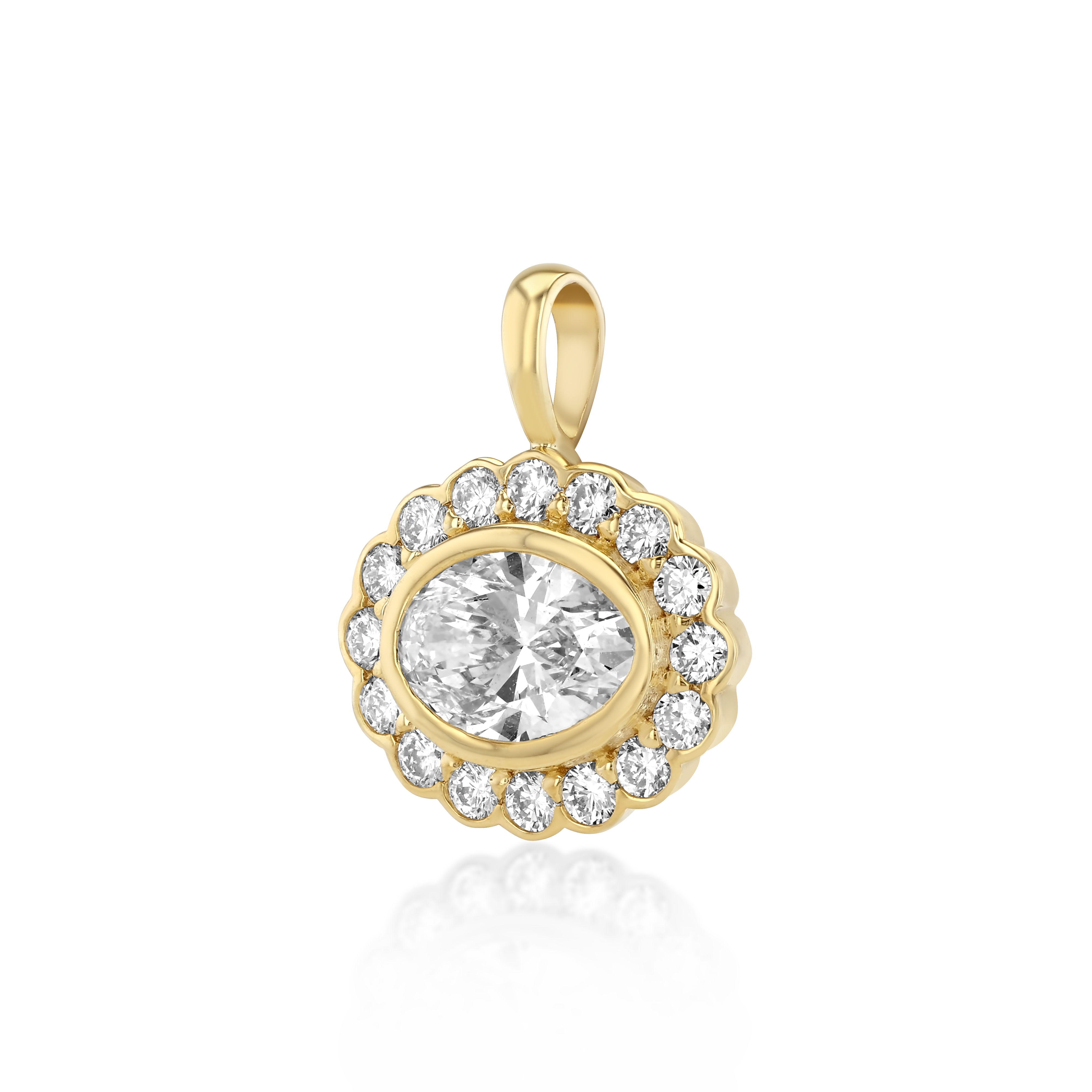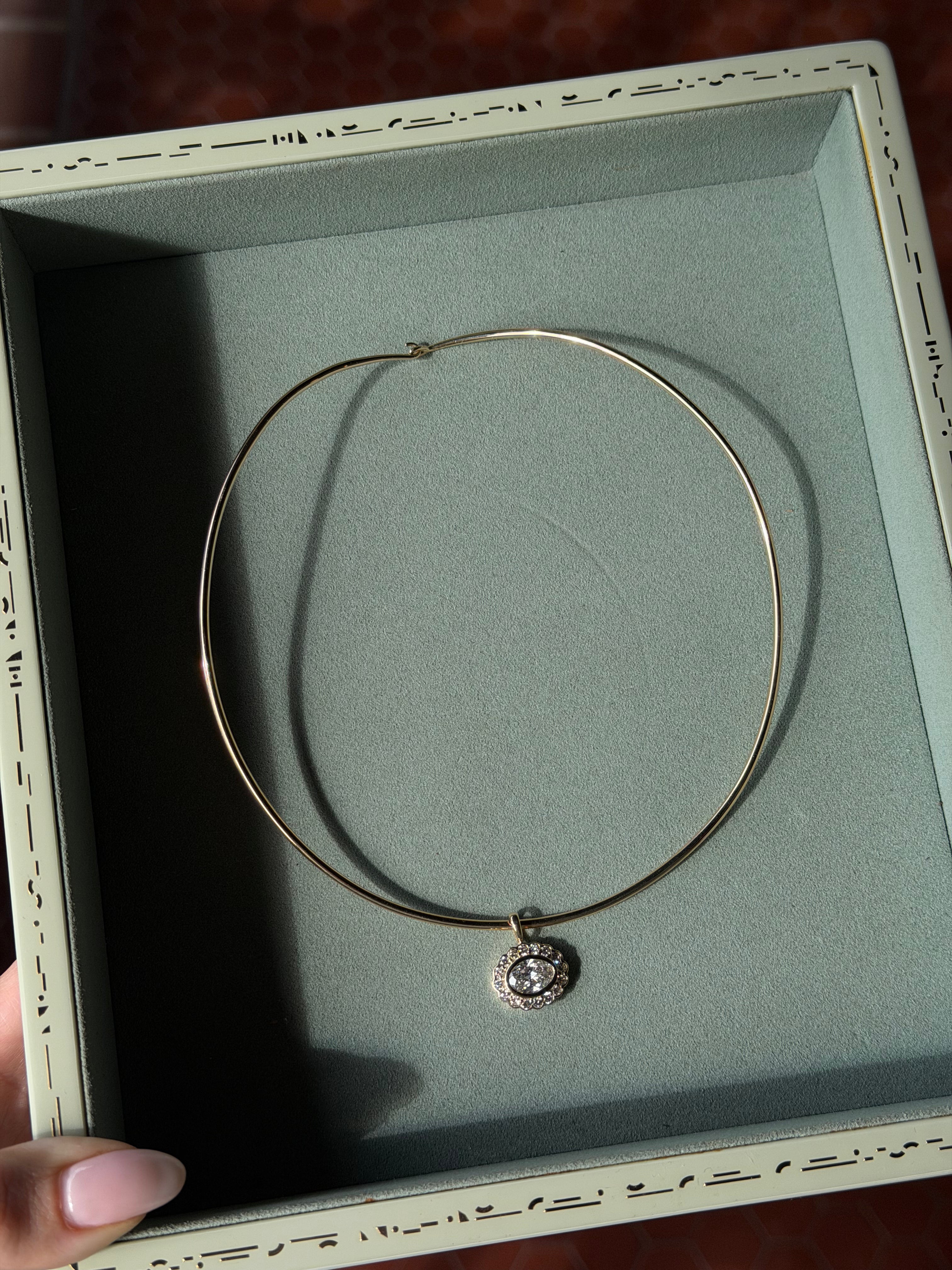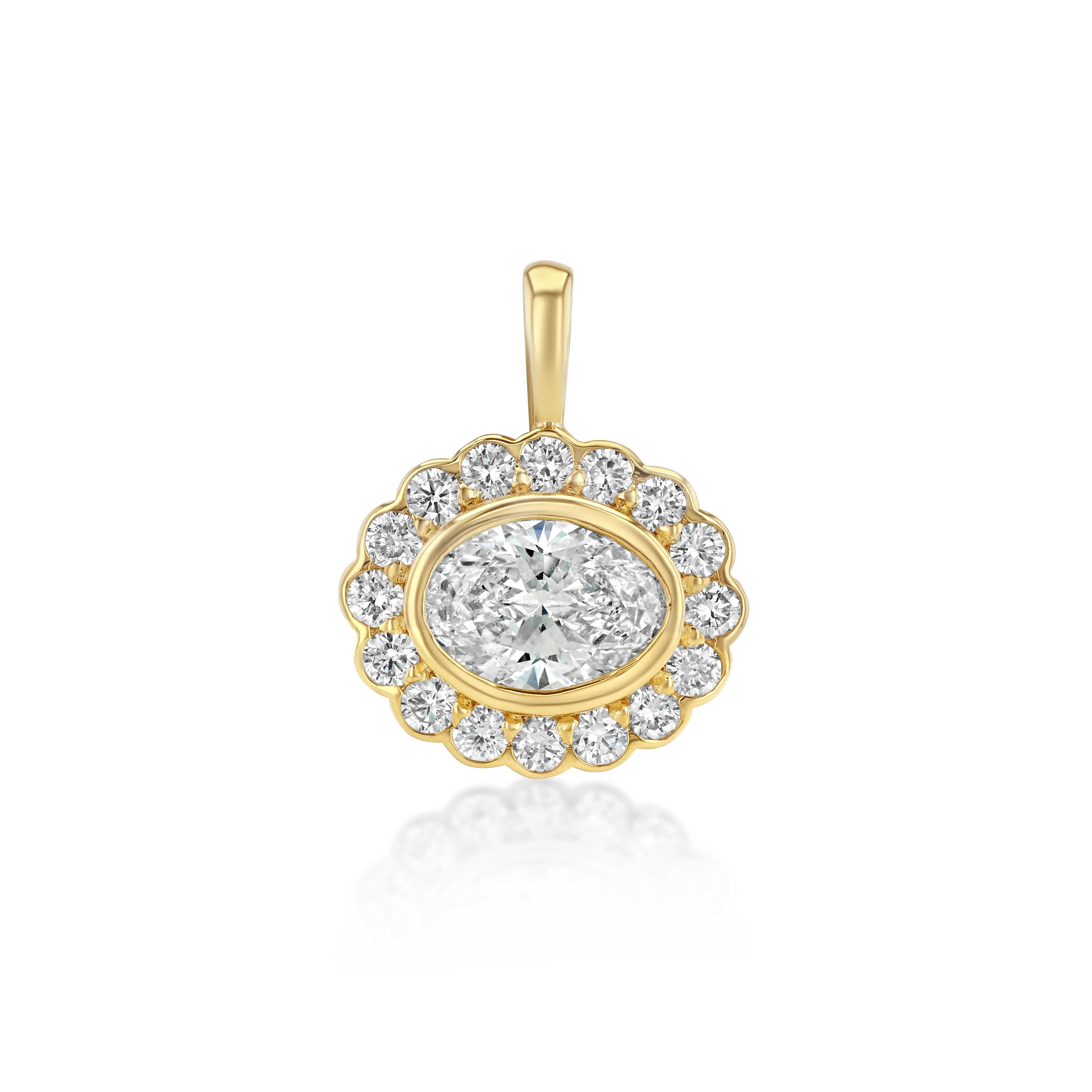 Meet the Mega East-West Heirloom Pendant in Snow. Inspired by our most loved Heirloom Signet Ring, this pendant is crafted in 14K Yellow Gold - featuring a 2ctw Lab Grown Diamond and surrounded by 16 Brilliant Round Lab Grown Diamonds Totaling 0.80ctw. Style it with our Sloane Chain, Hampton Chain or Porter Chain.