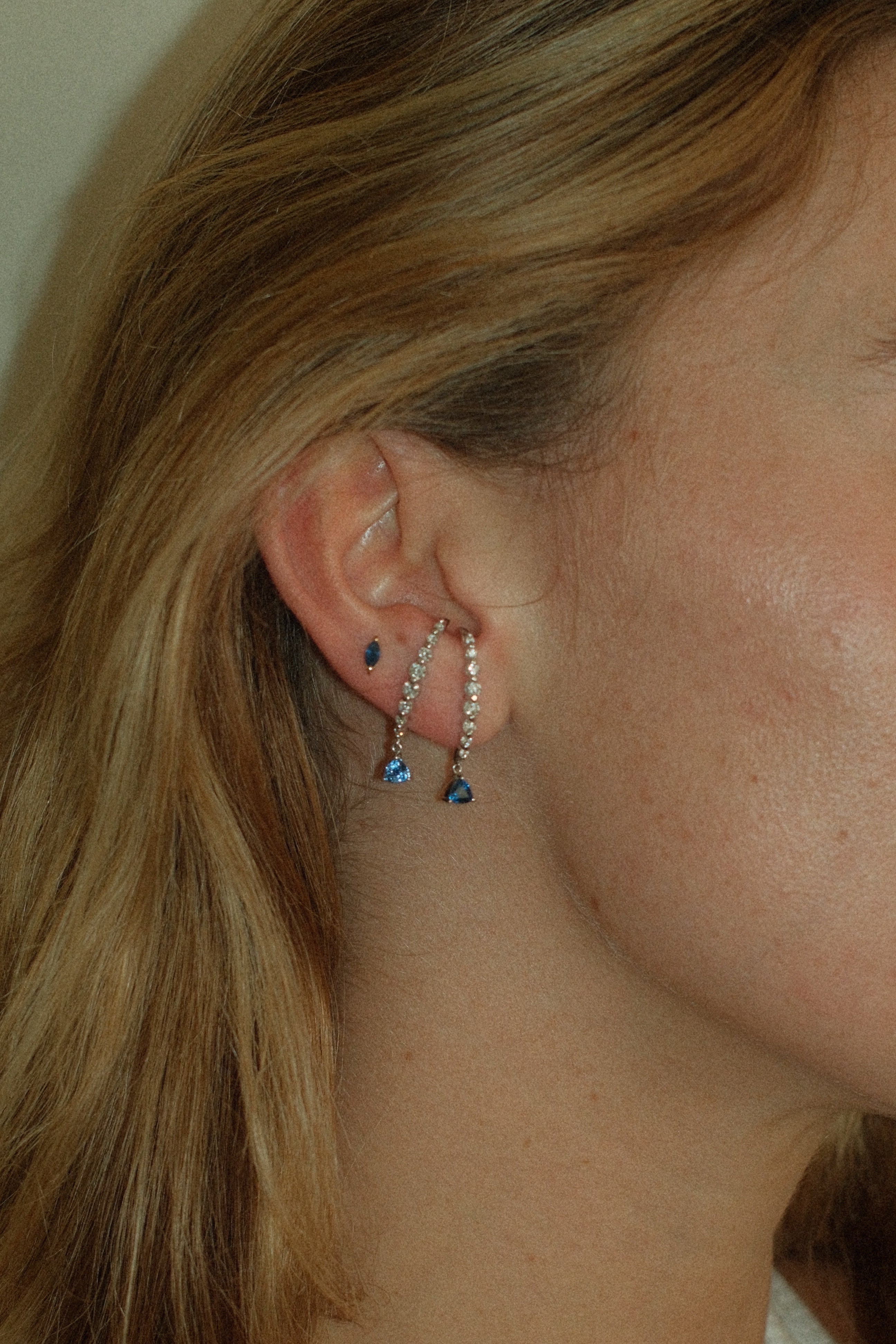 A Real Fine cuff like you have never seen before. Introducing our Carlyle Cuff adorned with the perfect triangle Ceylon Sapphire drop. The duo you didn't know you needed.