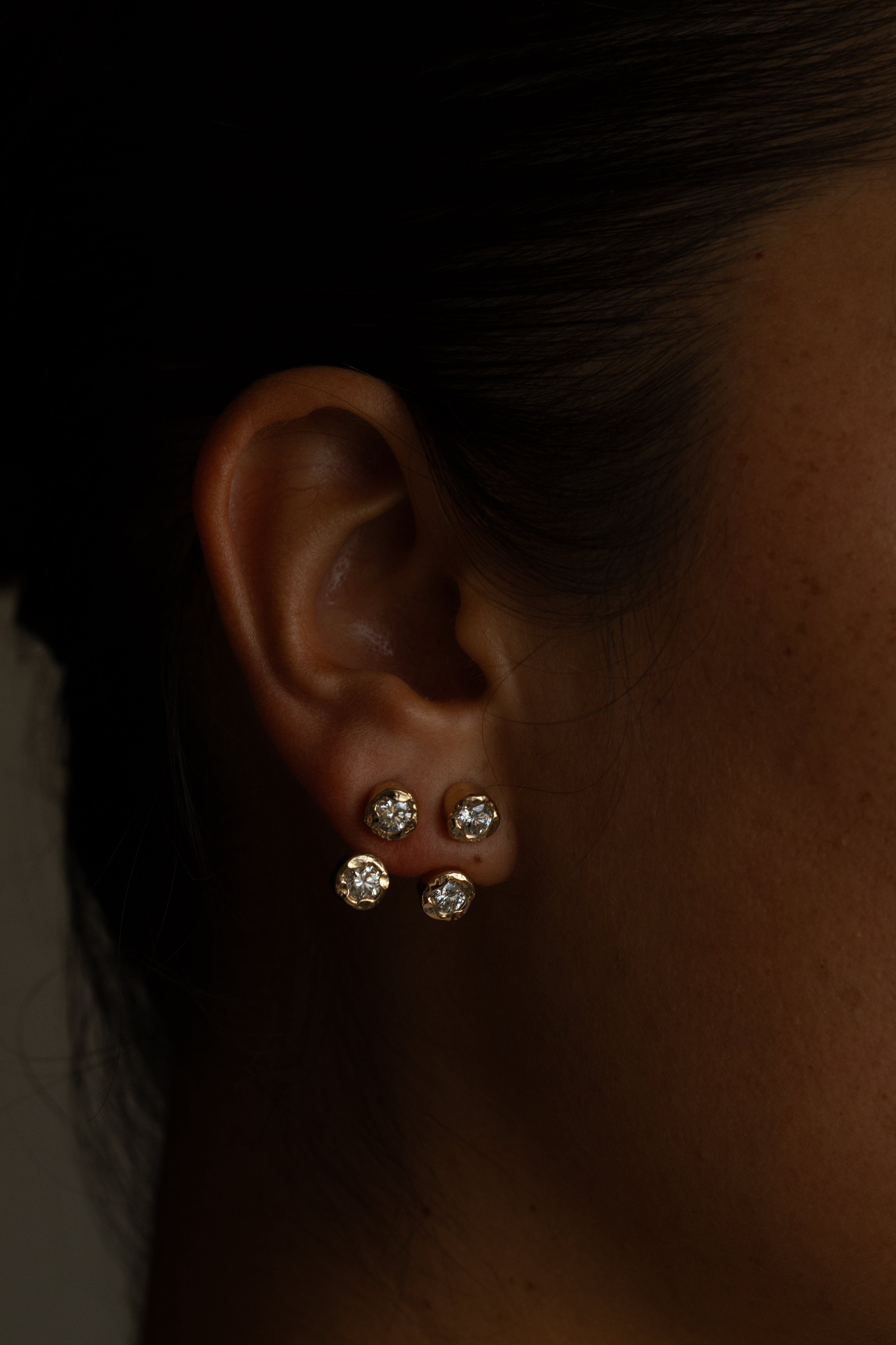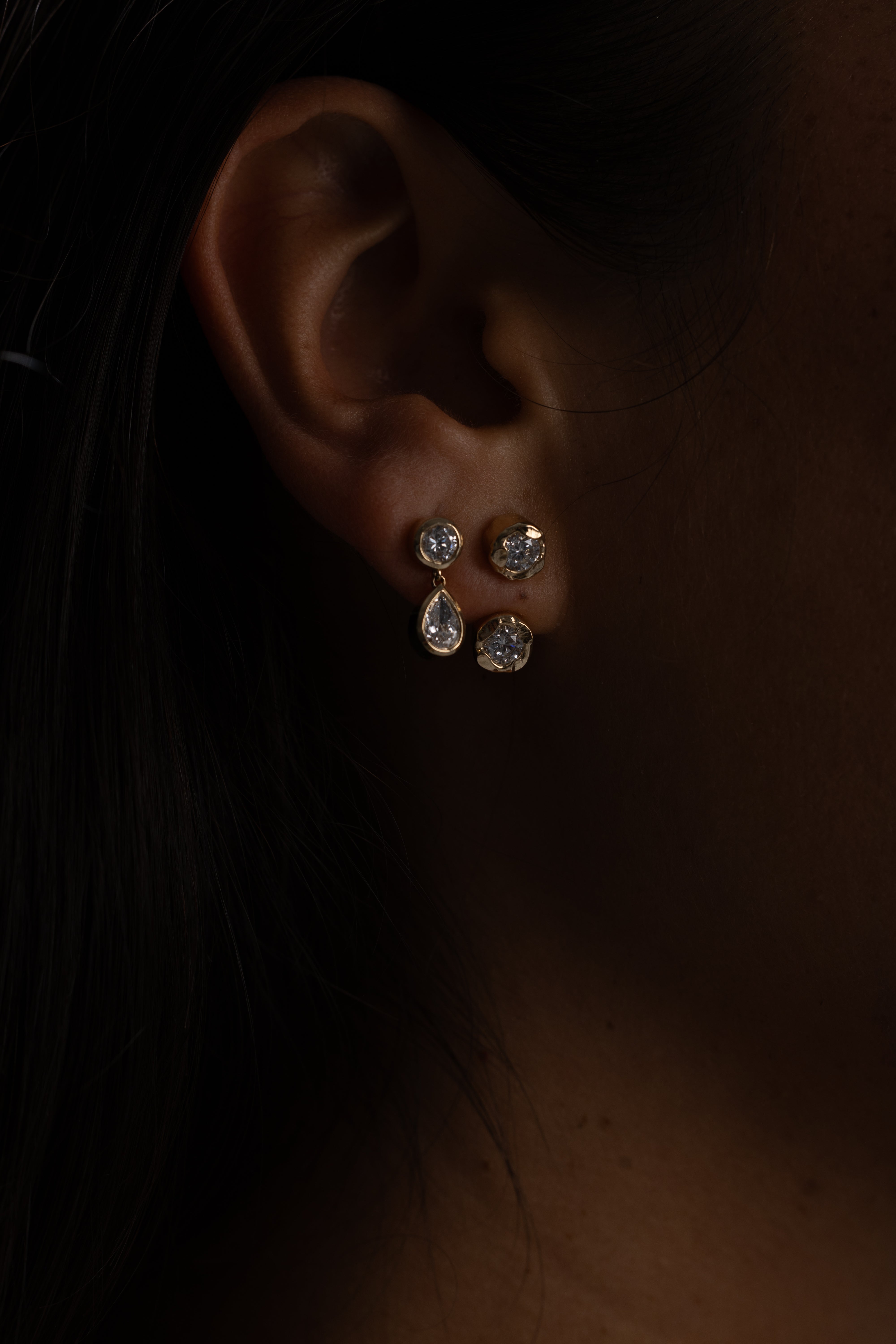 Handcrafted in 14k yellow gold with a softly hand hammered finish, the Golden Hour Earrings feature 2ctw of diamonds. Wear them as classic studs or add the detachable drops for a more elevated look. Effortless, versatile, and made to catch the light.