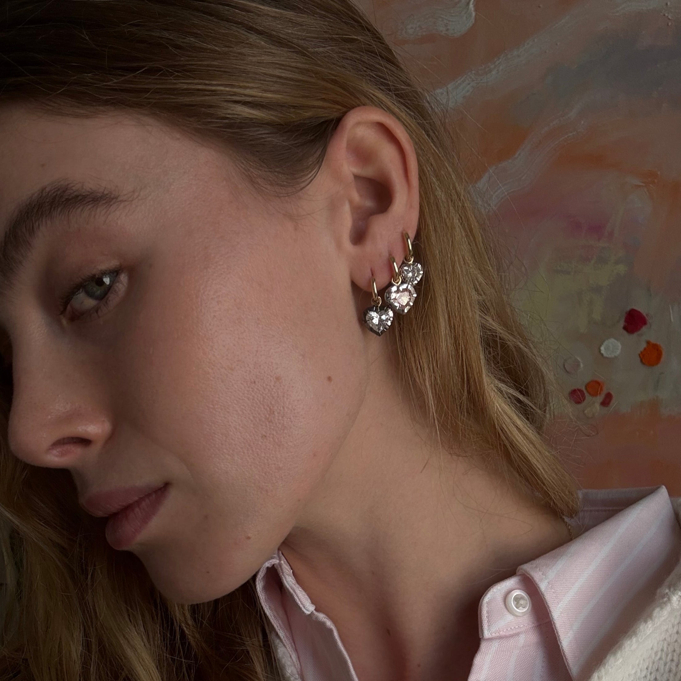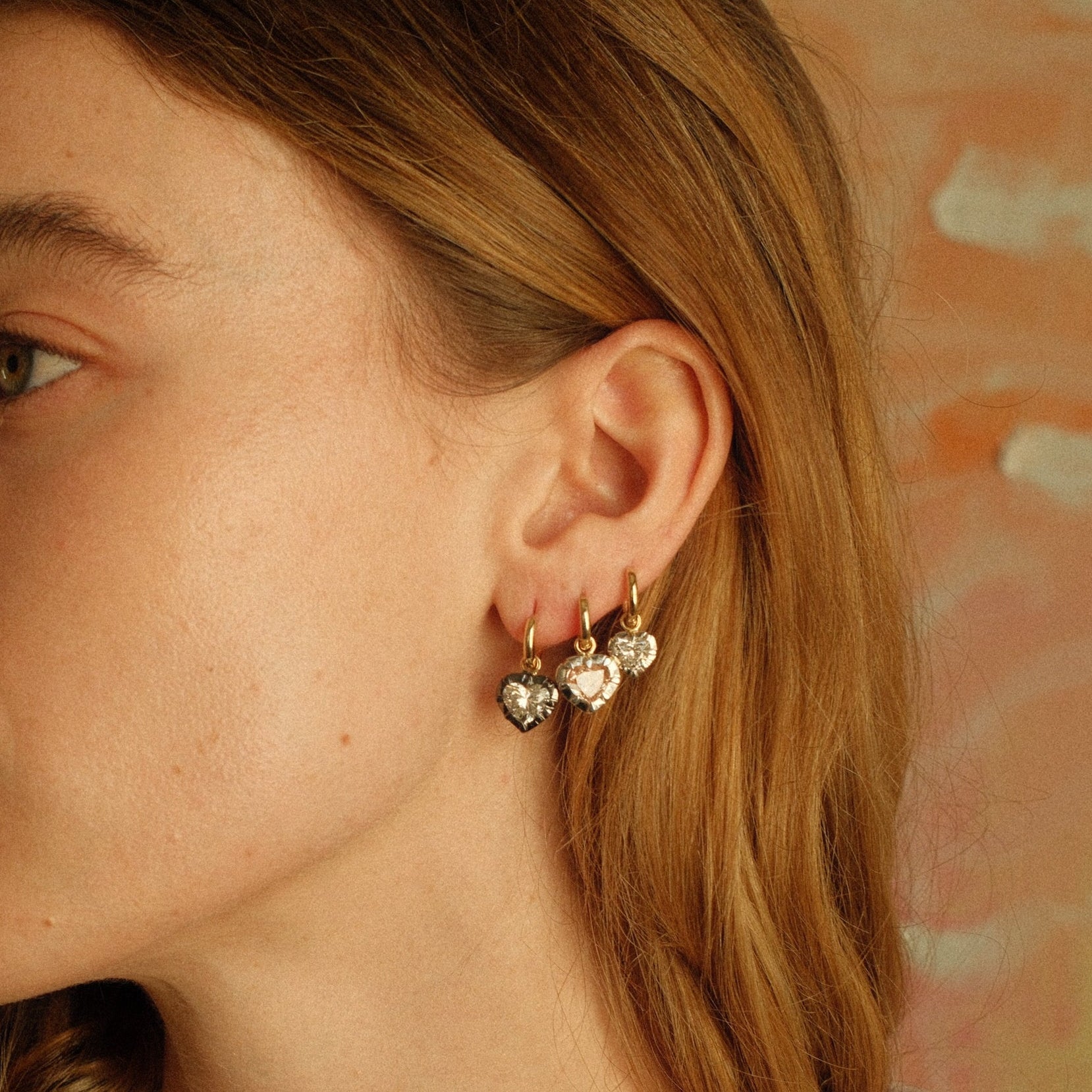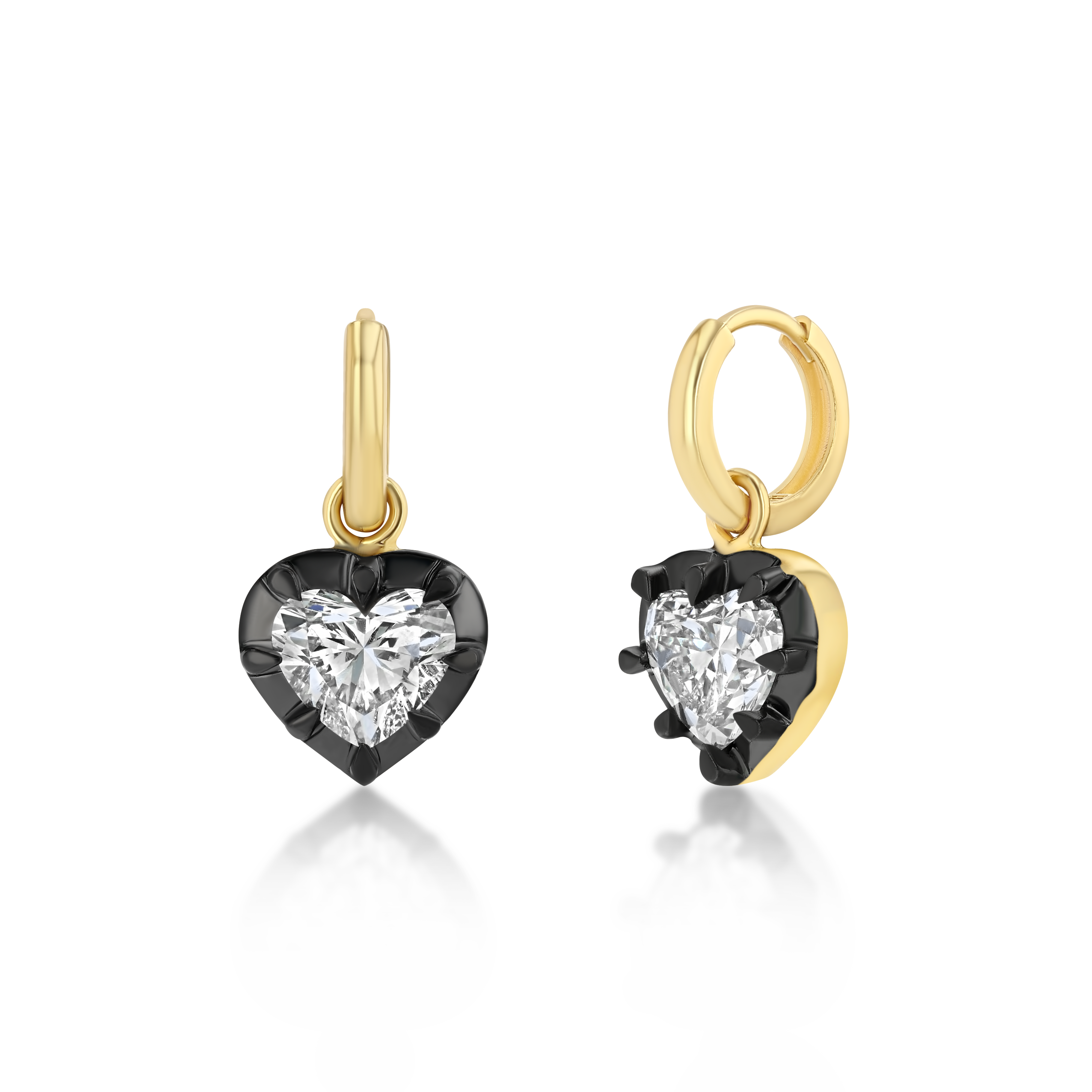 Introducing the Mega Heart Georgians in Black Rhodium. Crafted in 14K Yellow Gold with a Black Rhodium finish, these antique-inspired earrings pay homage to the Georgian Era, featuring a traditional Button-Back setting. Handcrafted in Los Angeles, each earring is set with a cultivated 1.5ct VS1 F Diamond, combining heritage design with modern refinement.