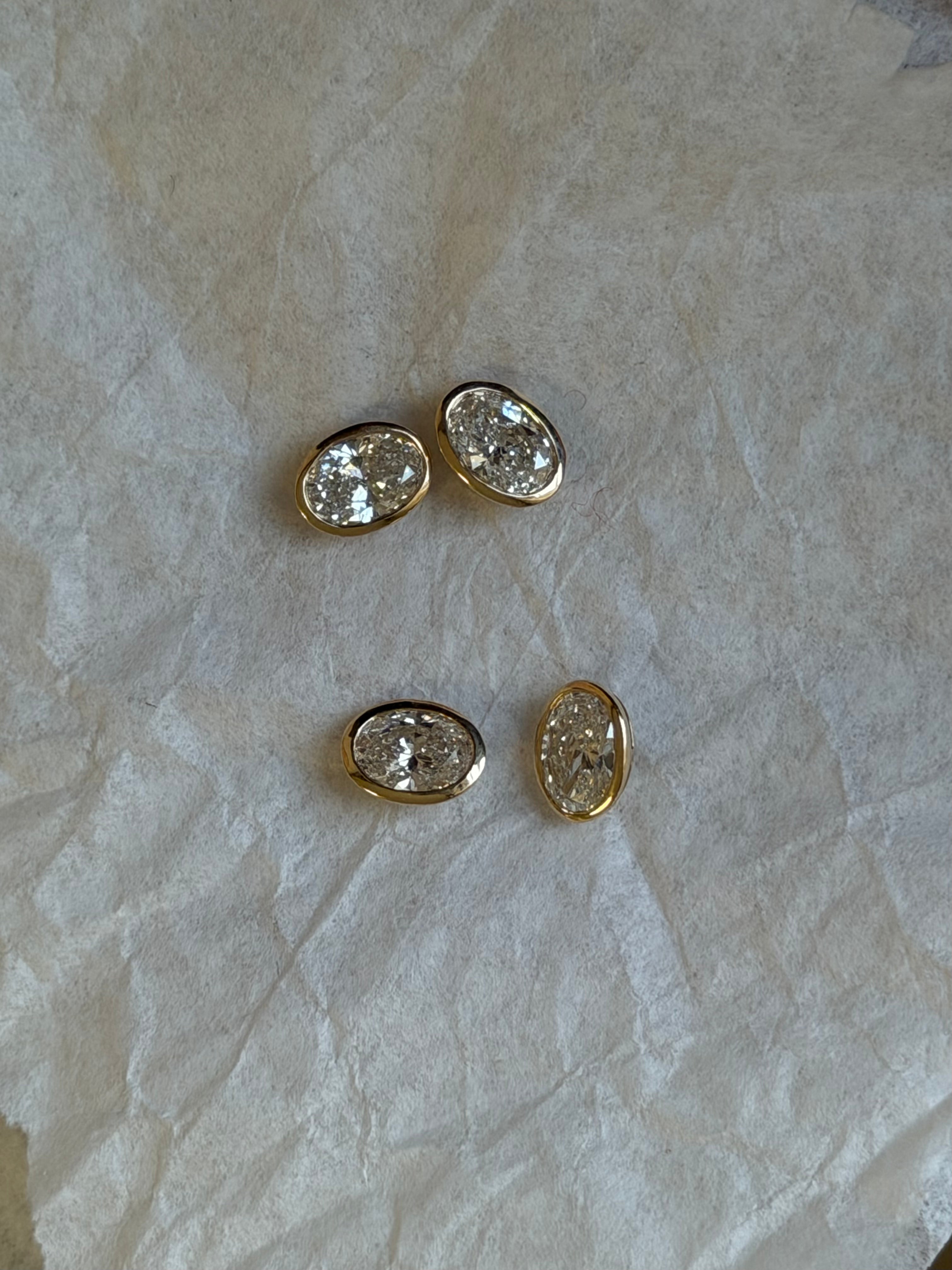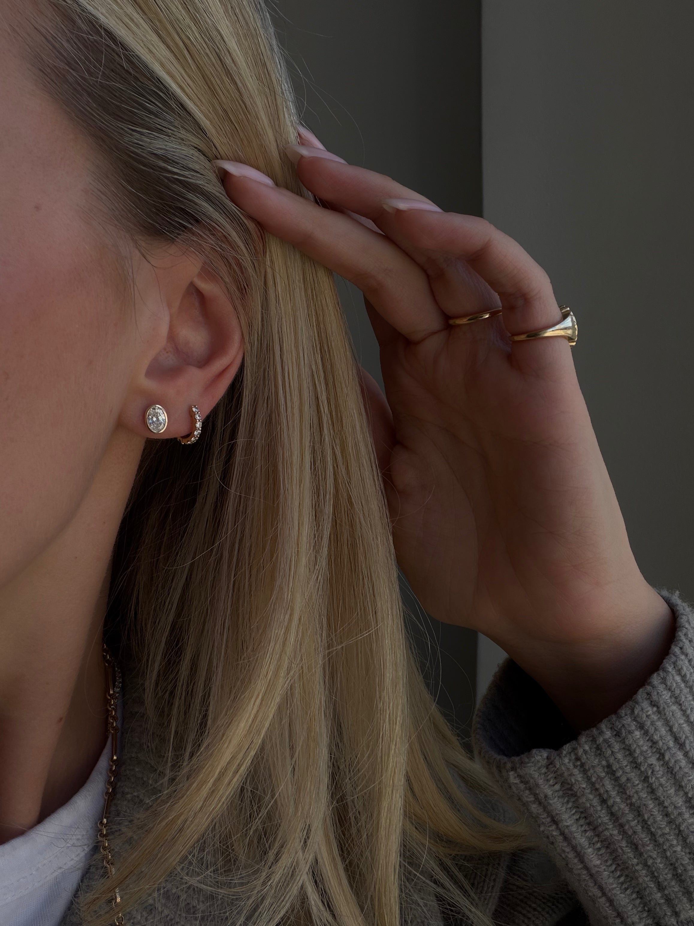 Our Bezel Oval Studs are designed for everyday wear, set in a sleek low-profile bezel so they sit as close to the ear as possible and feel flush. Effortless, and made to live in, they are the kind of studs you never take off.