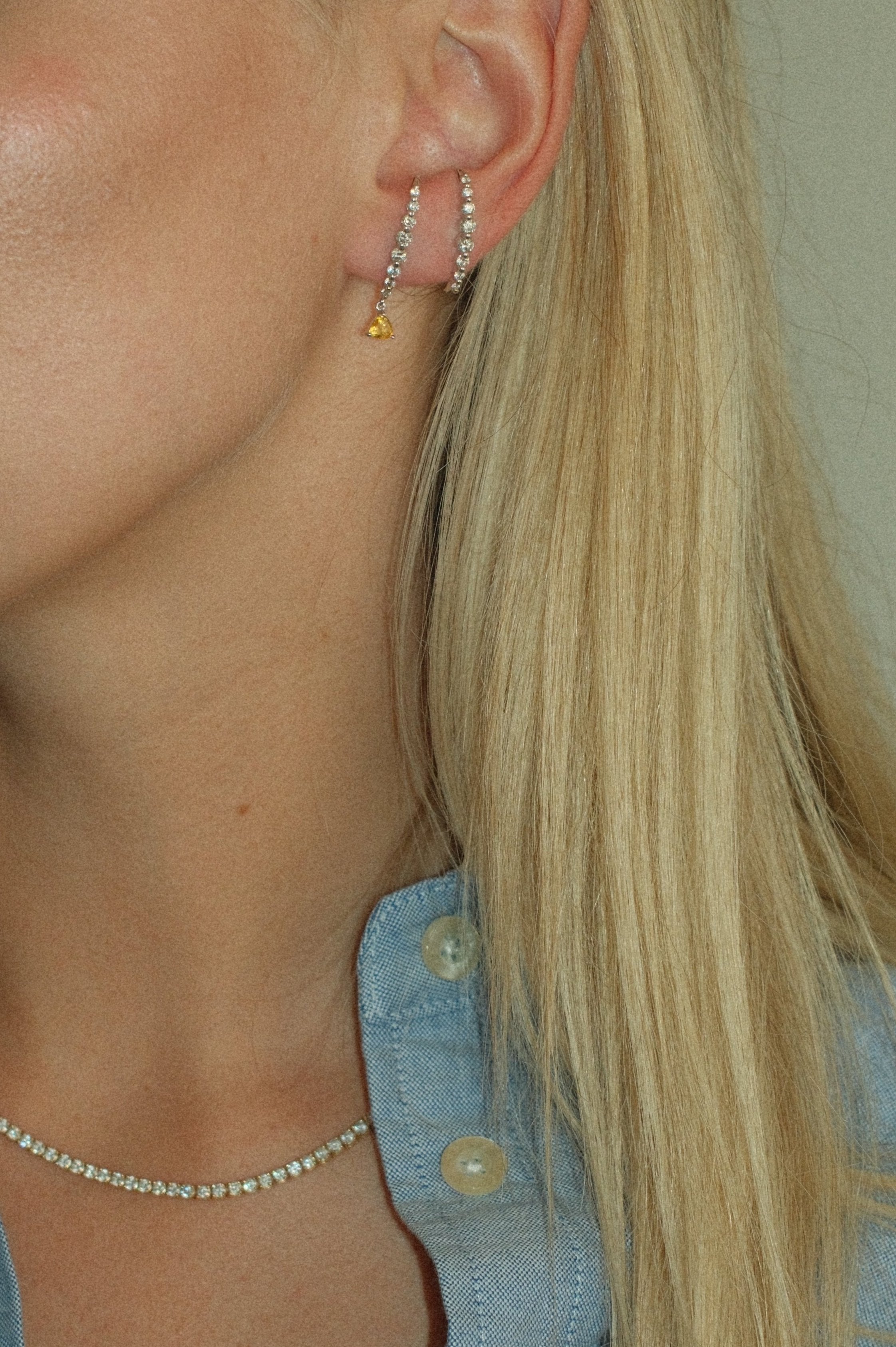 A Real Fine cuff like you have never seen before. Introducing our Carlyle Cuff adorned with the perfect triangle Yellow Sapphire drop. The duo you didn't know you needed.