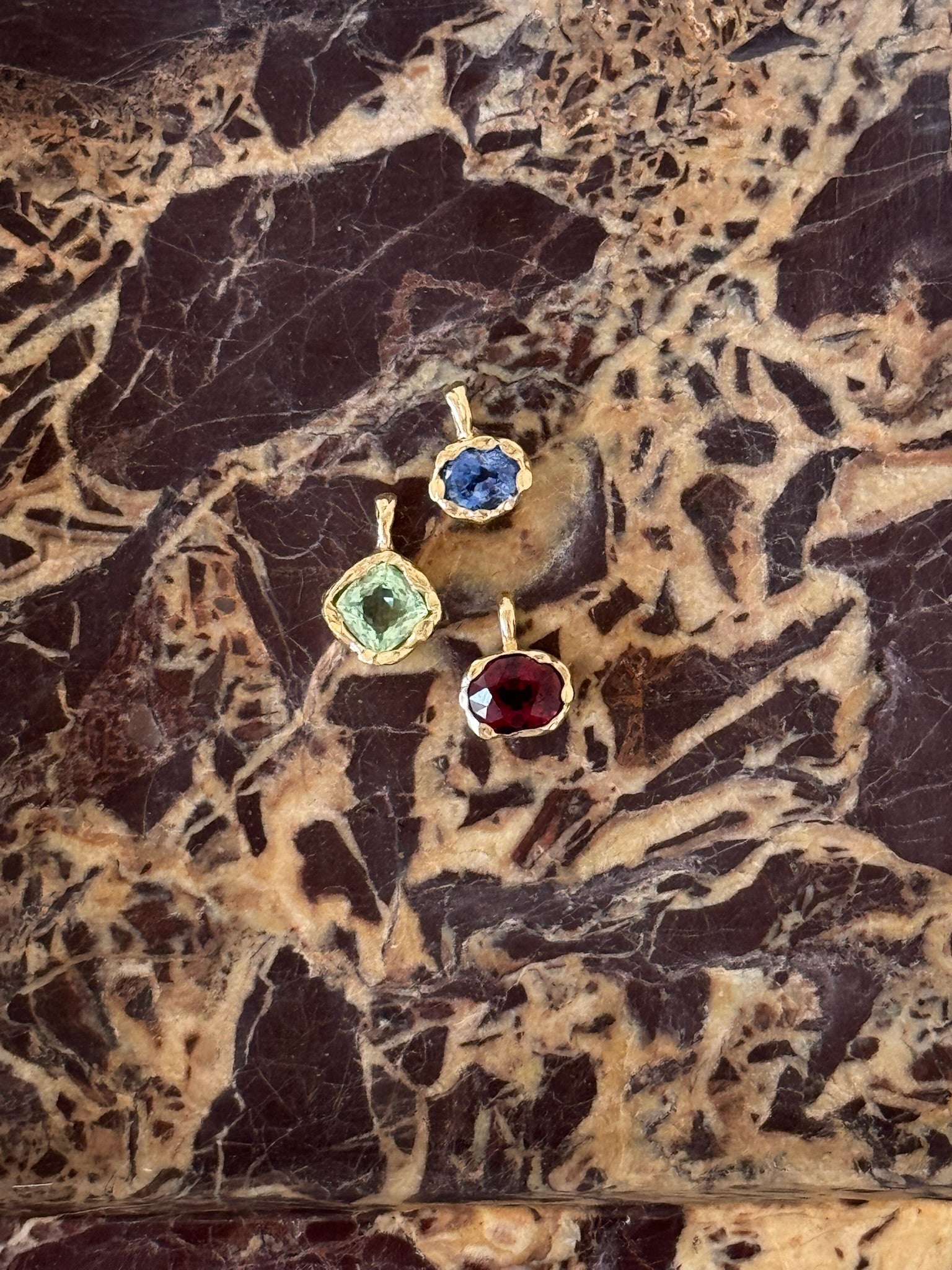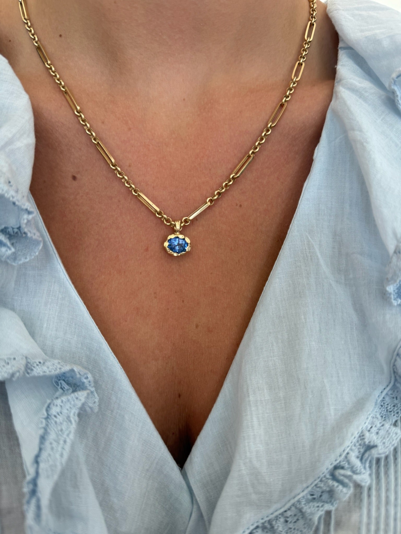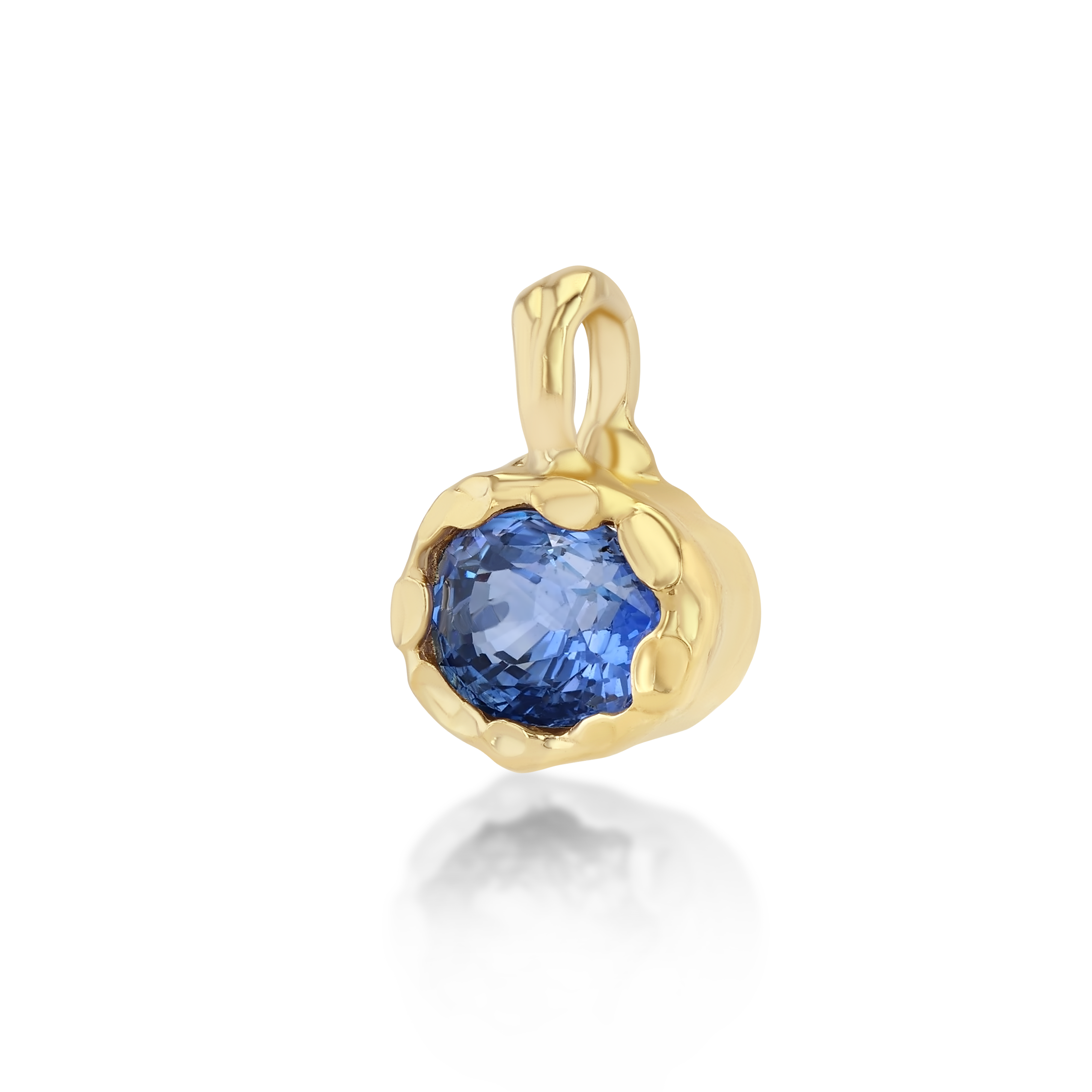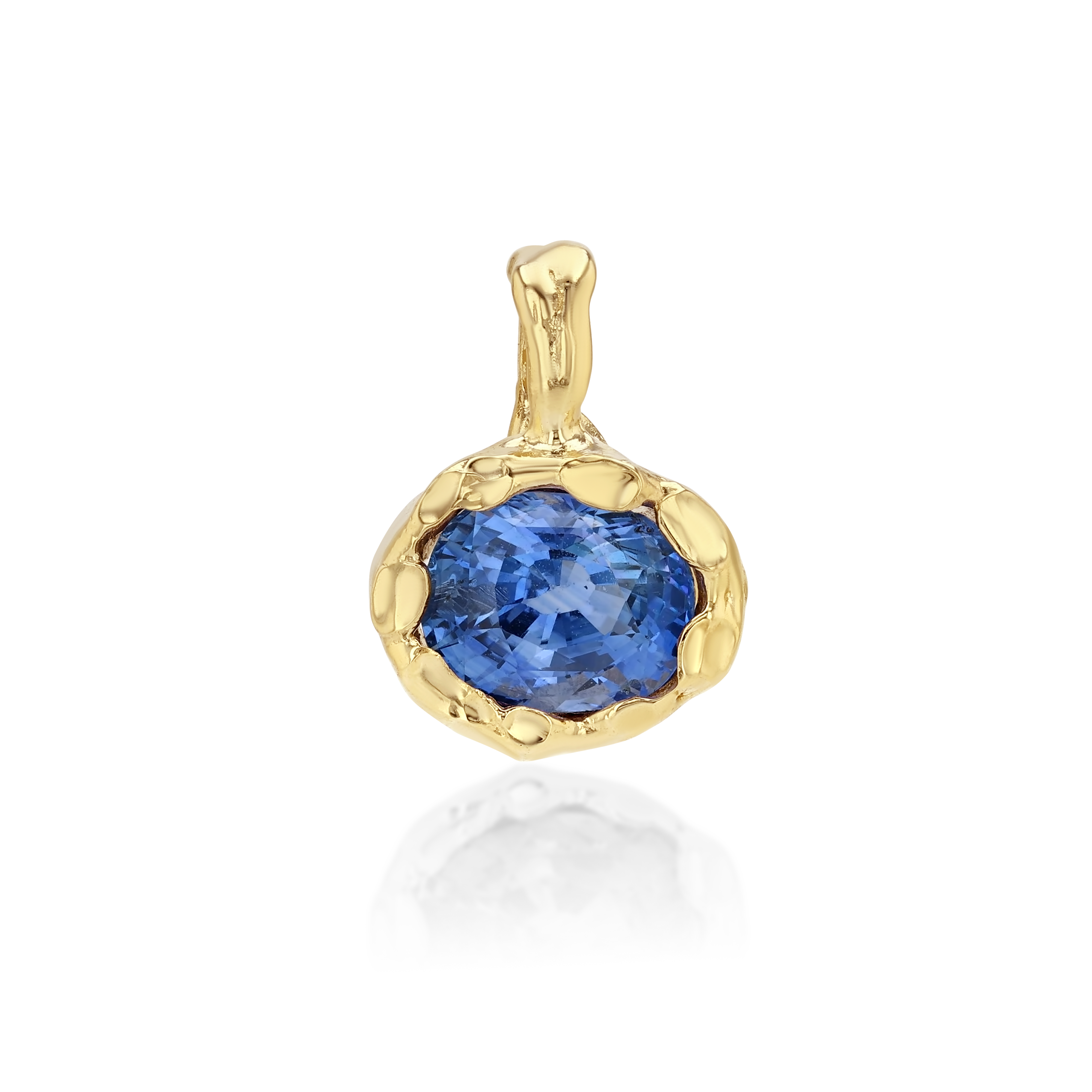 Part of our Golden Hour Collection, this one-of-a-kind charm features a hand-selected 2.16ct Ceylon Sapphire set in hammered 14k Yellow Gold. Each piece is individually finished for a soft, light-catching surface — designed to feel personal, lived in, and uniquely yours. No two are the same!
