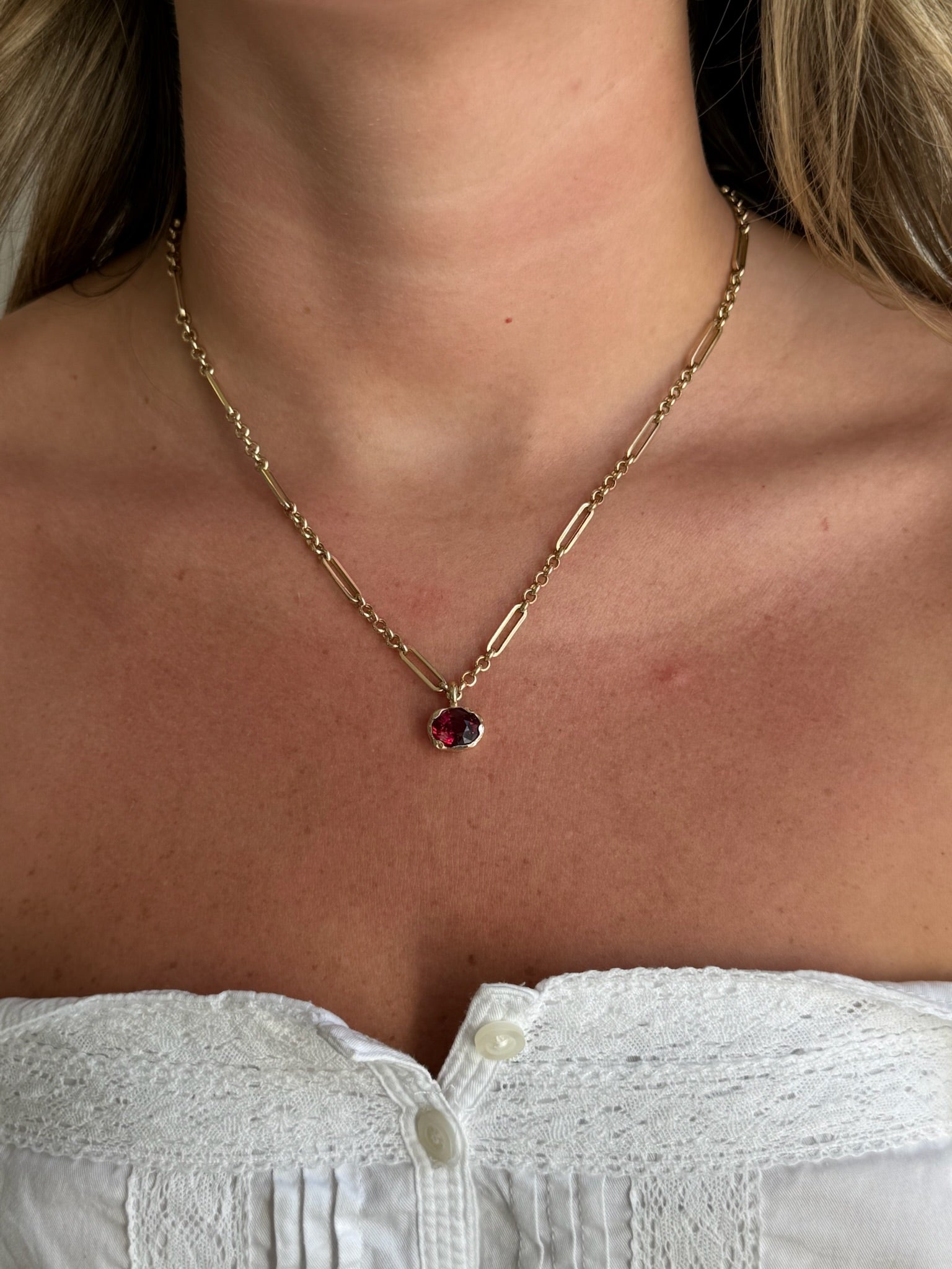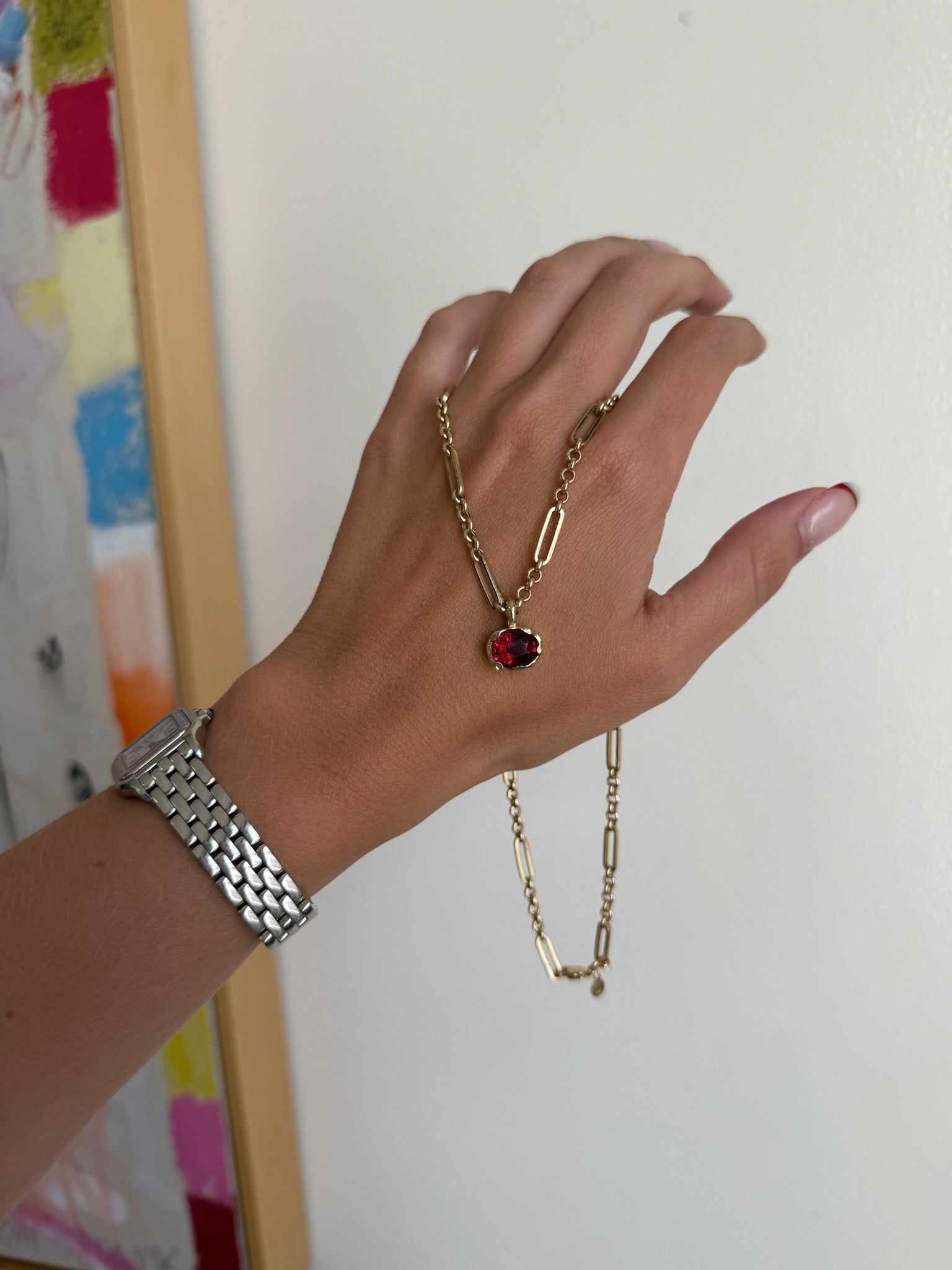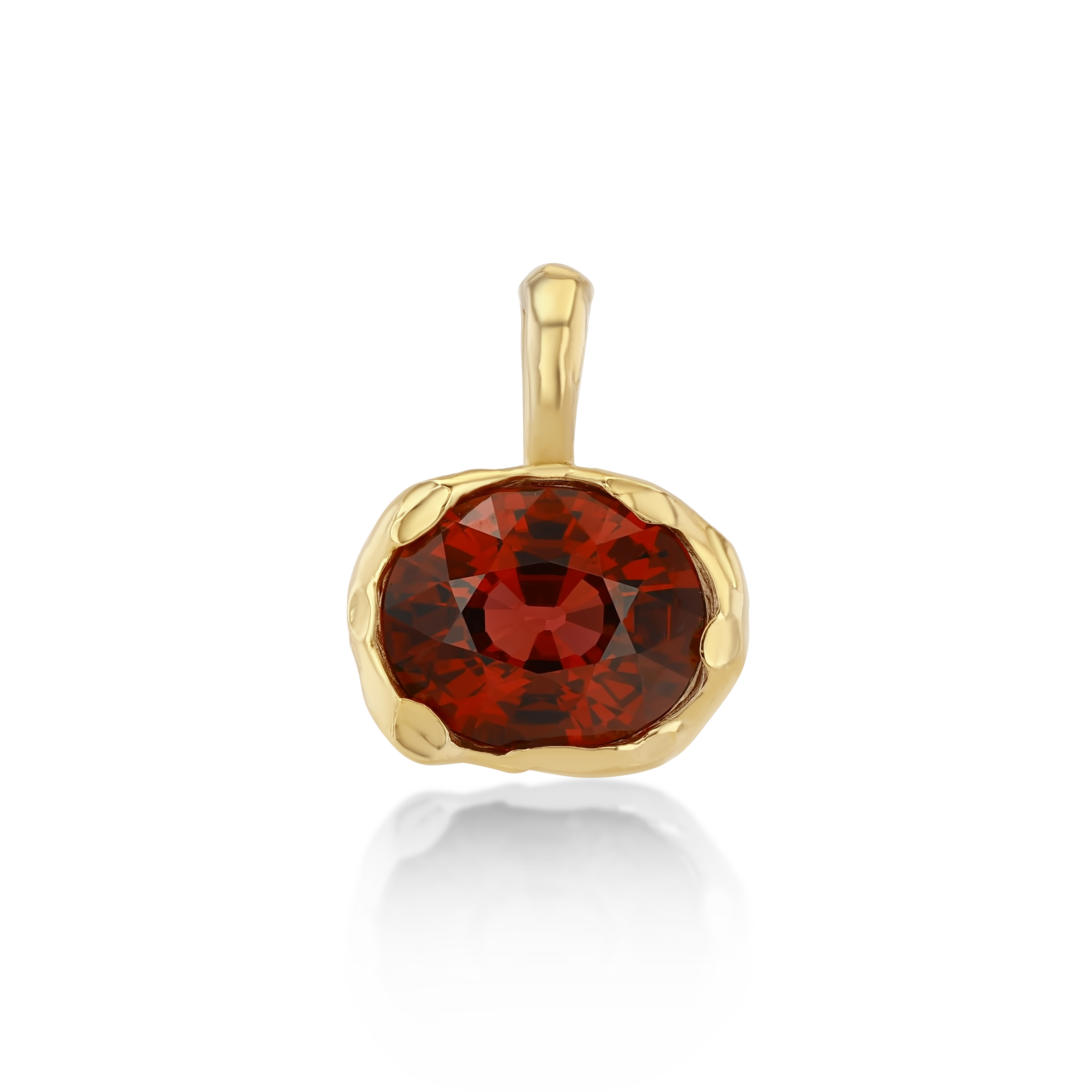 Part of our Golden Hour collection, this one-of-a-kind charm features a hand-selected 3.52ct Rhodolite Garnet set in hammered 14k Yellow Gold. Each piece is individually finished for a soft, light-catching surface — designed to feel personal, lived in, and uniquely yours. No two are the same!