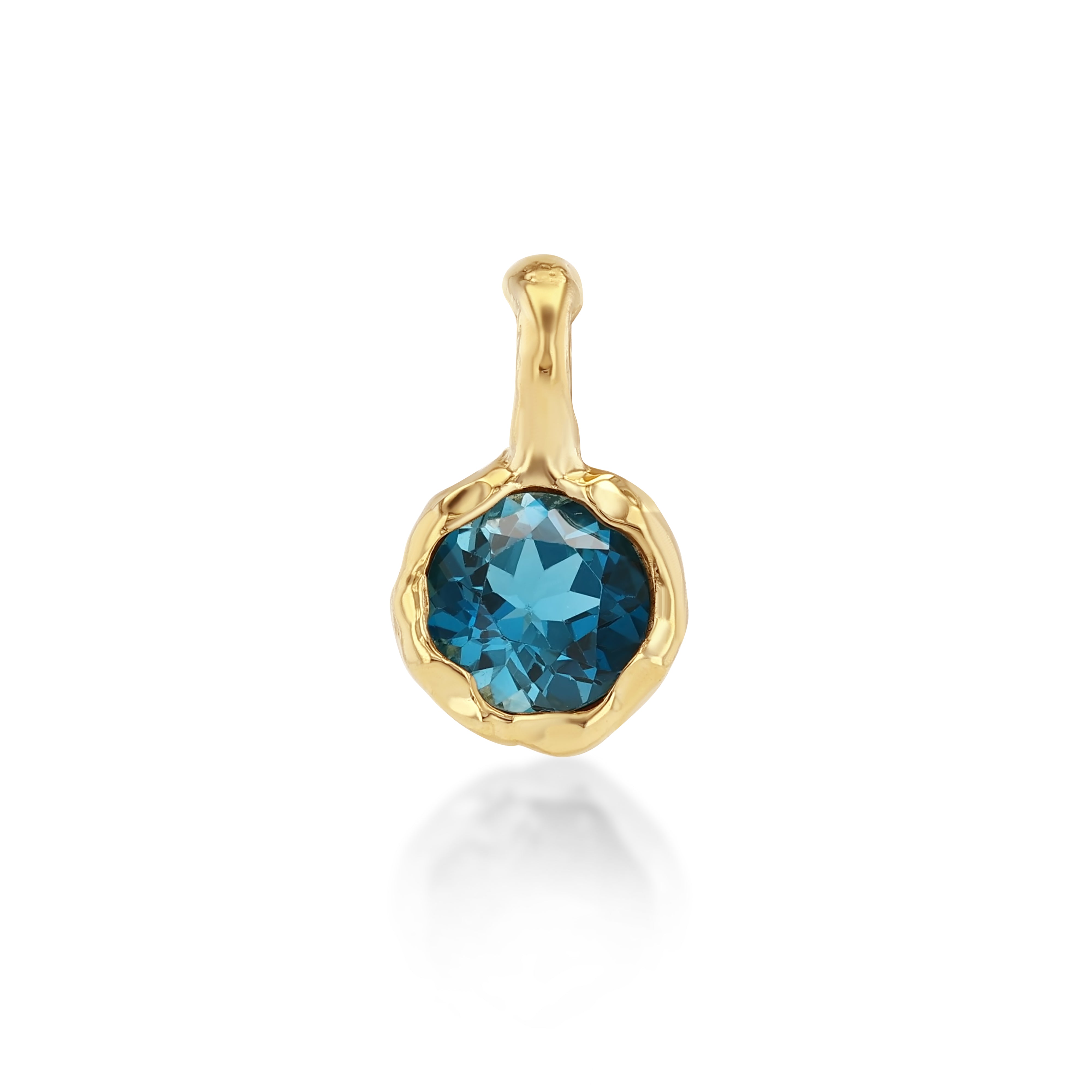 From our Golden Hour collection, this charm features a London blue topaz set in subtly hammered 14k gold. The soft, organic finish catches the light with ease. Designed to pair with our Hampton Necklace or Anklet.
