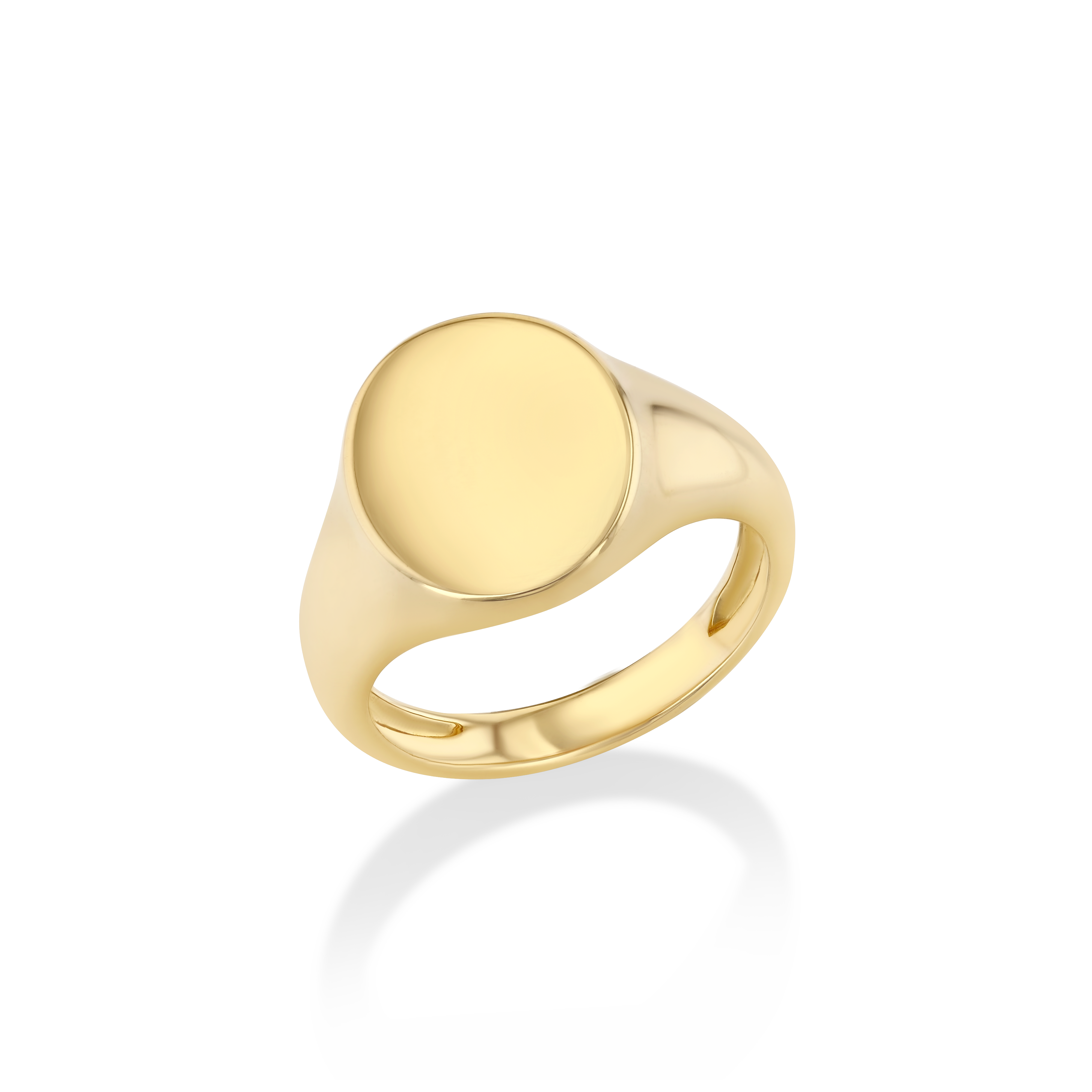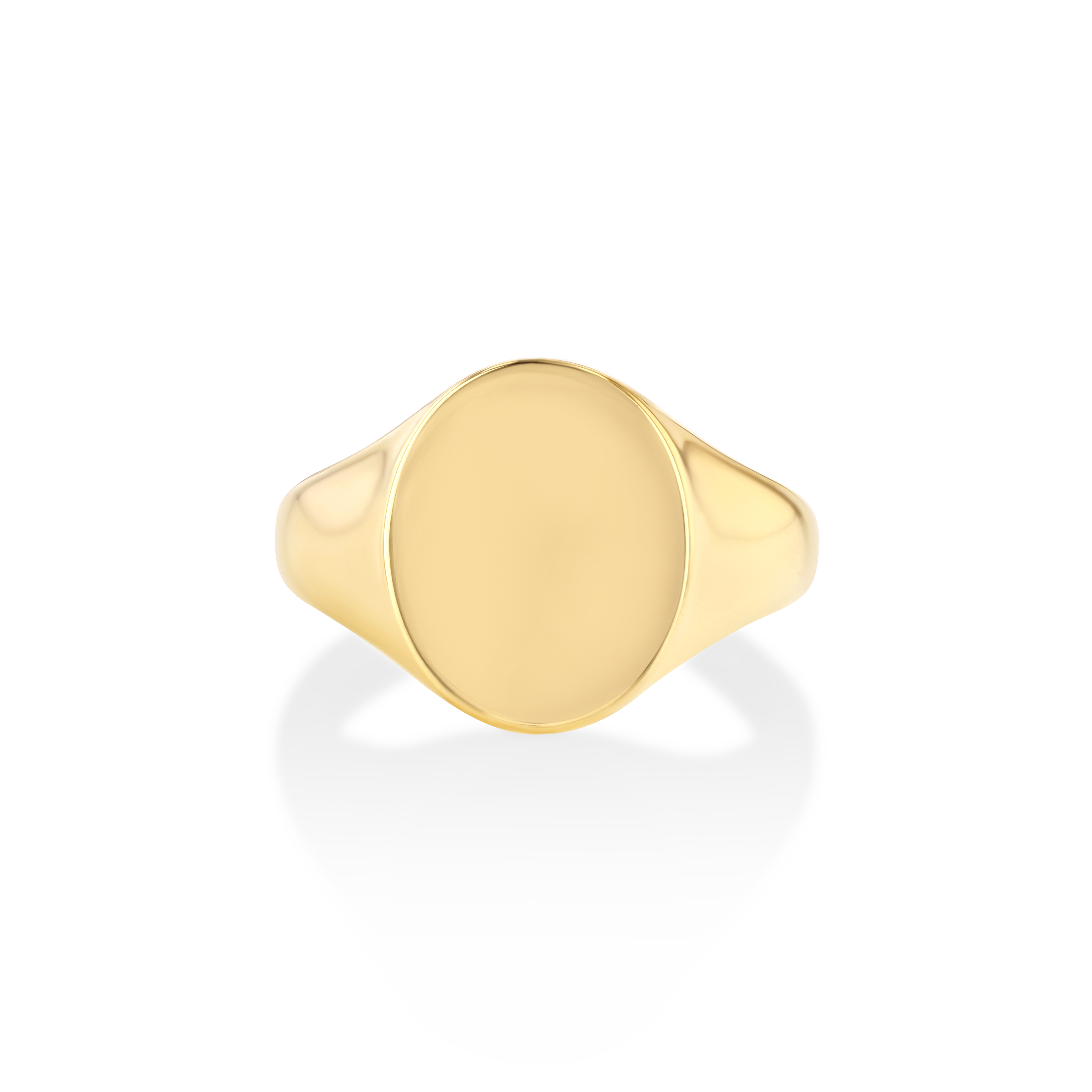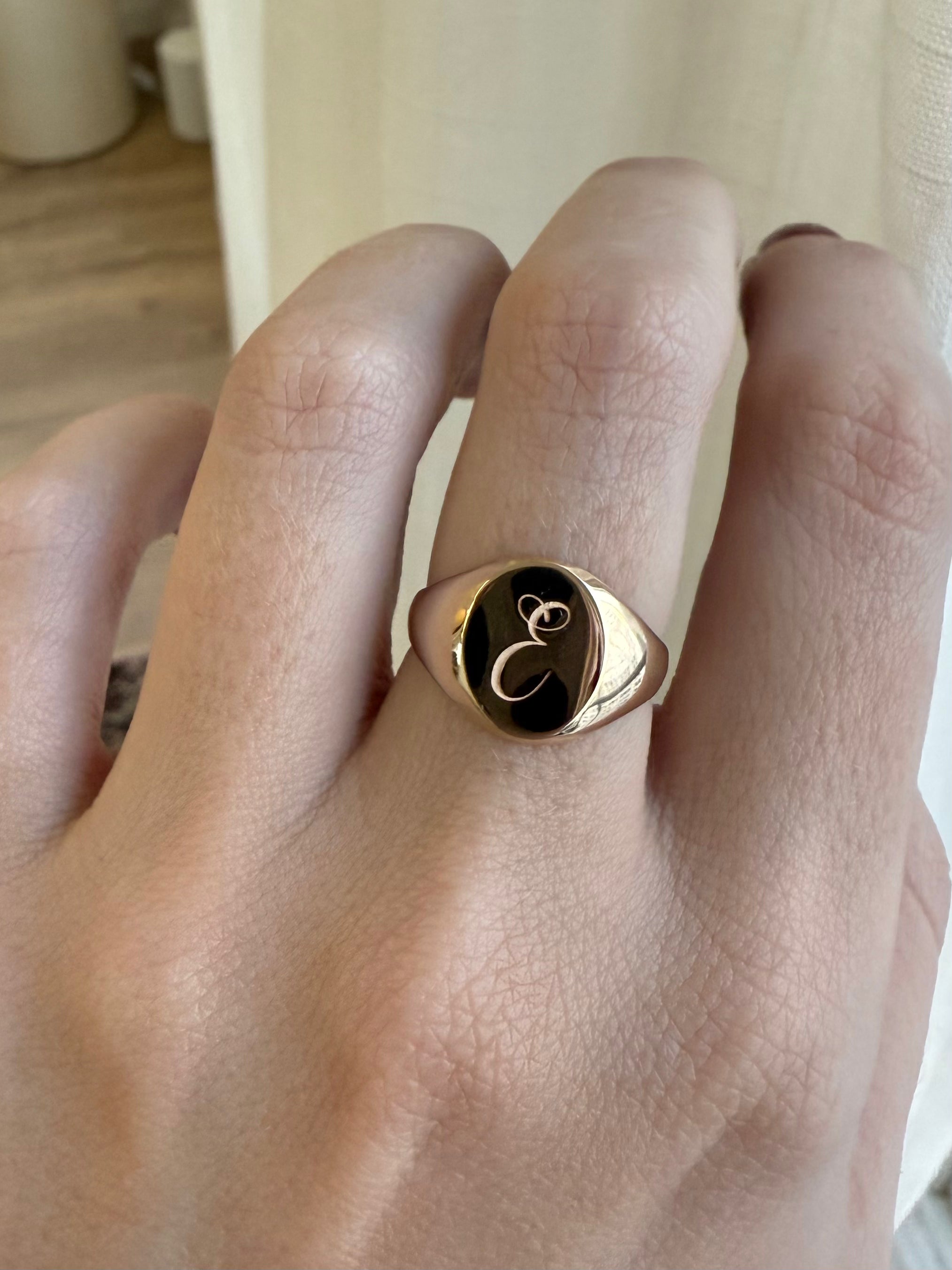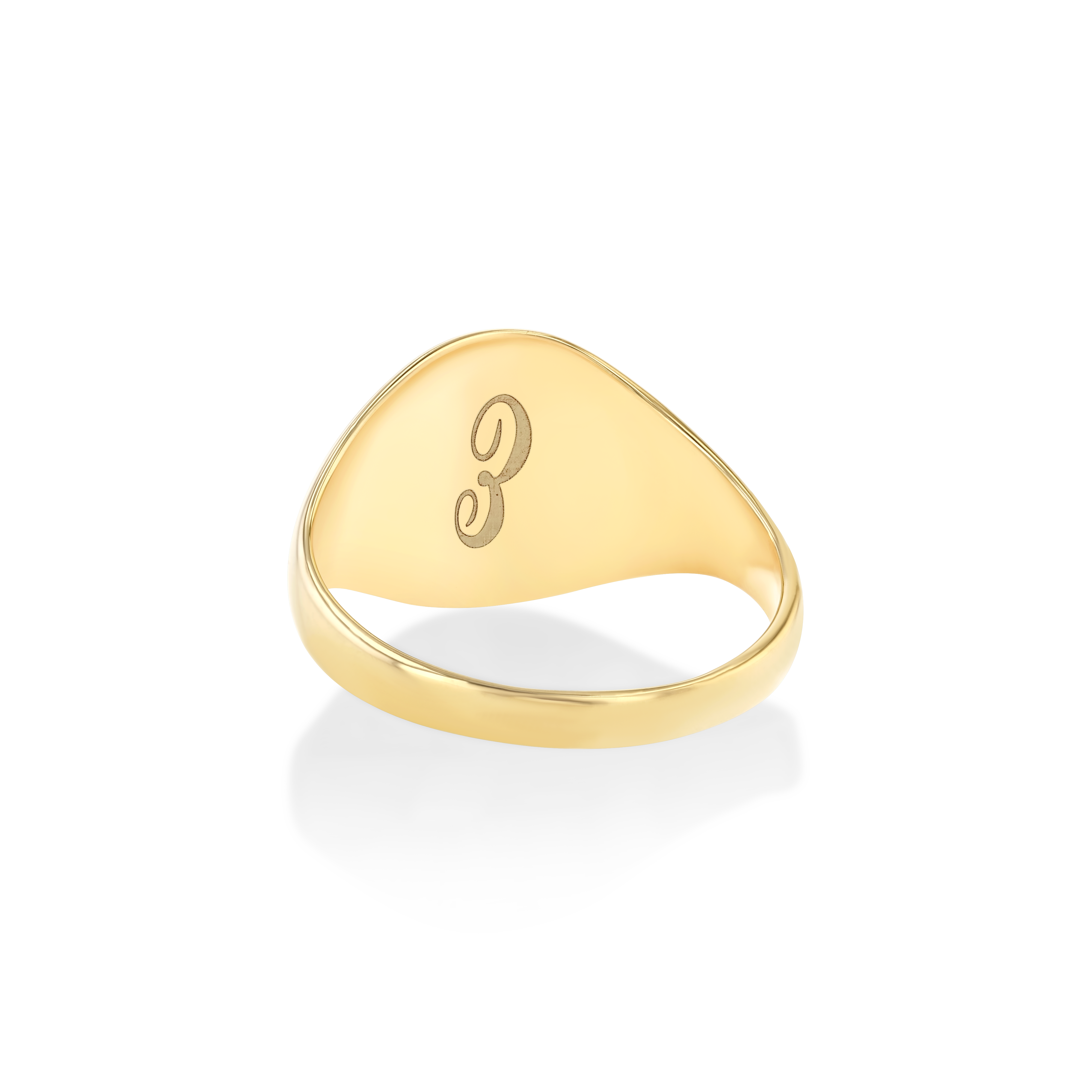 Our Dean Signet without the diamonds. Crafted in solid 14k Yellow Gold. Engraved with an initial of your choice on the top and inside of the ring. The perfect gift for yourself or your boyfriend, dad, husband or partner!
