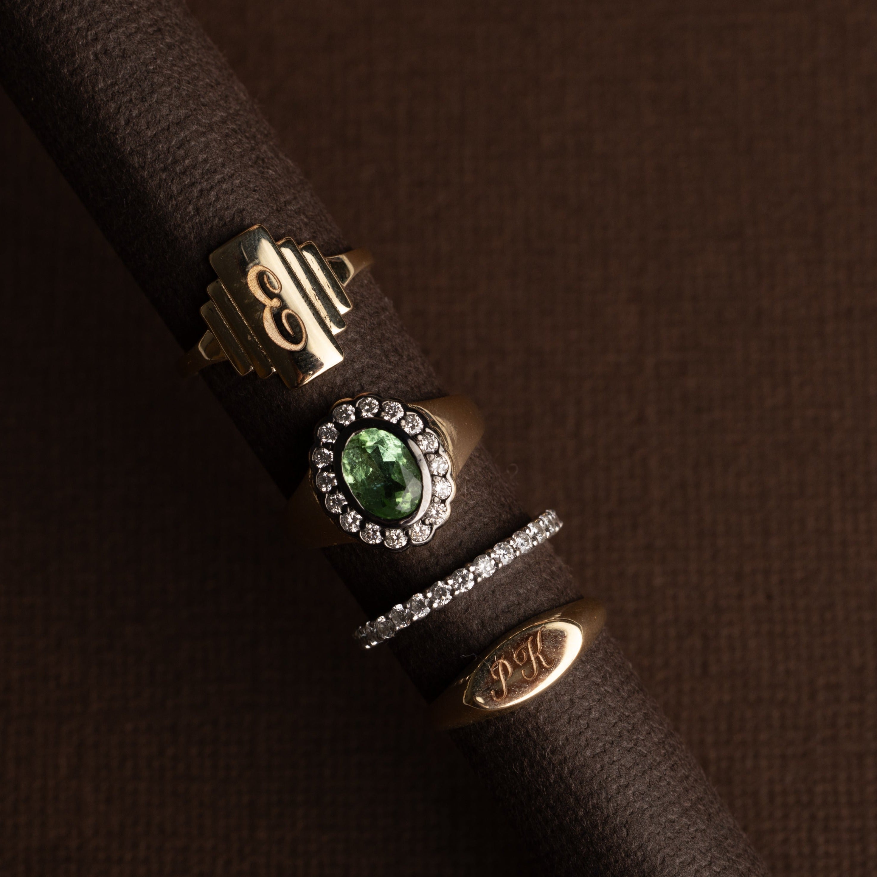 A part of the heirloom collection, The Edna signet ring pays homage to its origins in 1920s England, originally designed by our founders grandmother, Edna. Crafted in 14k Gold with the engraving of your choice.