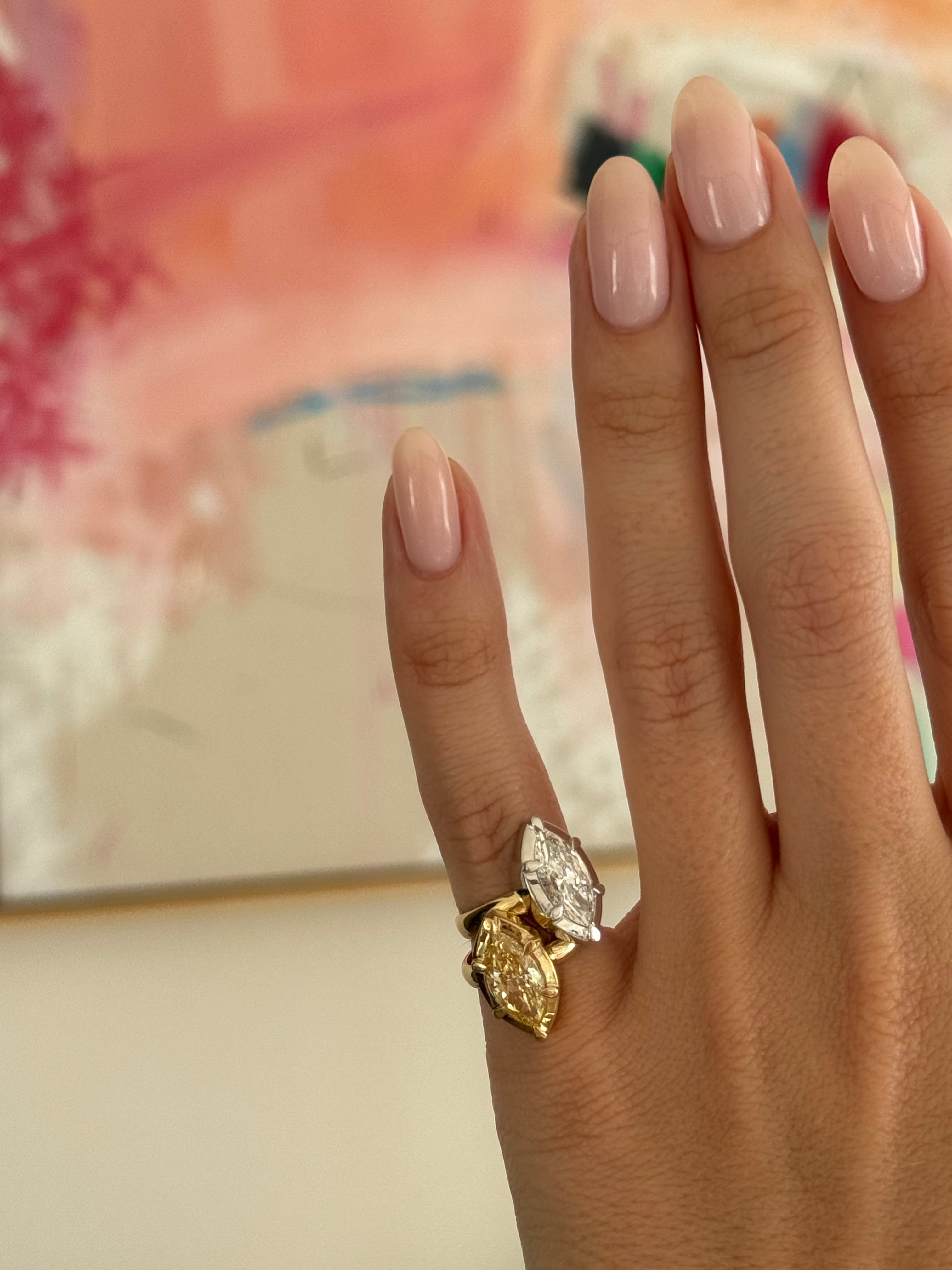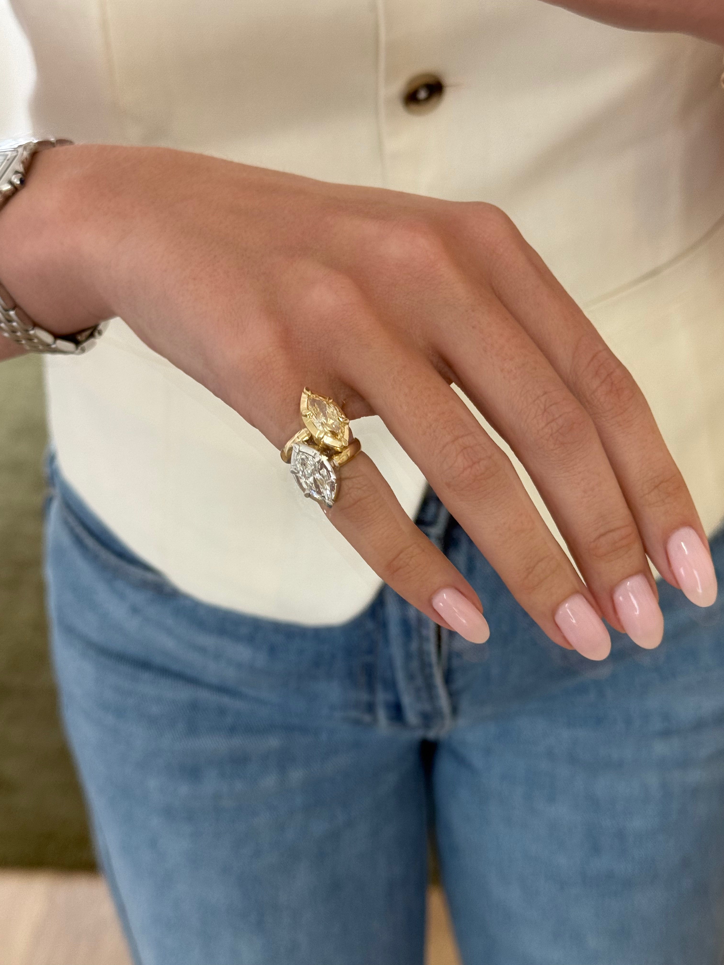 Mega Marquise Button Back Ring in Fancy Yellow