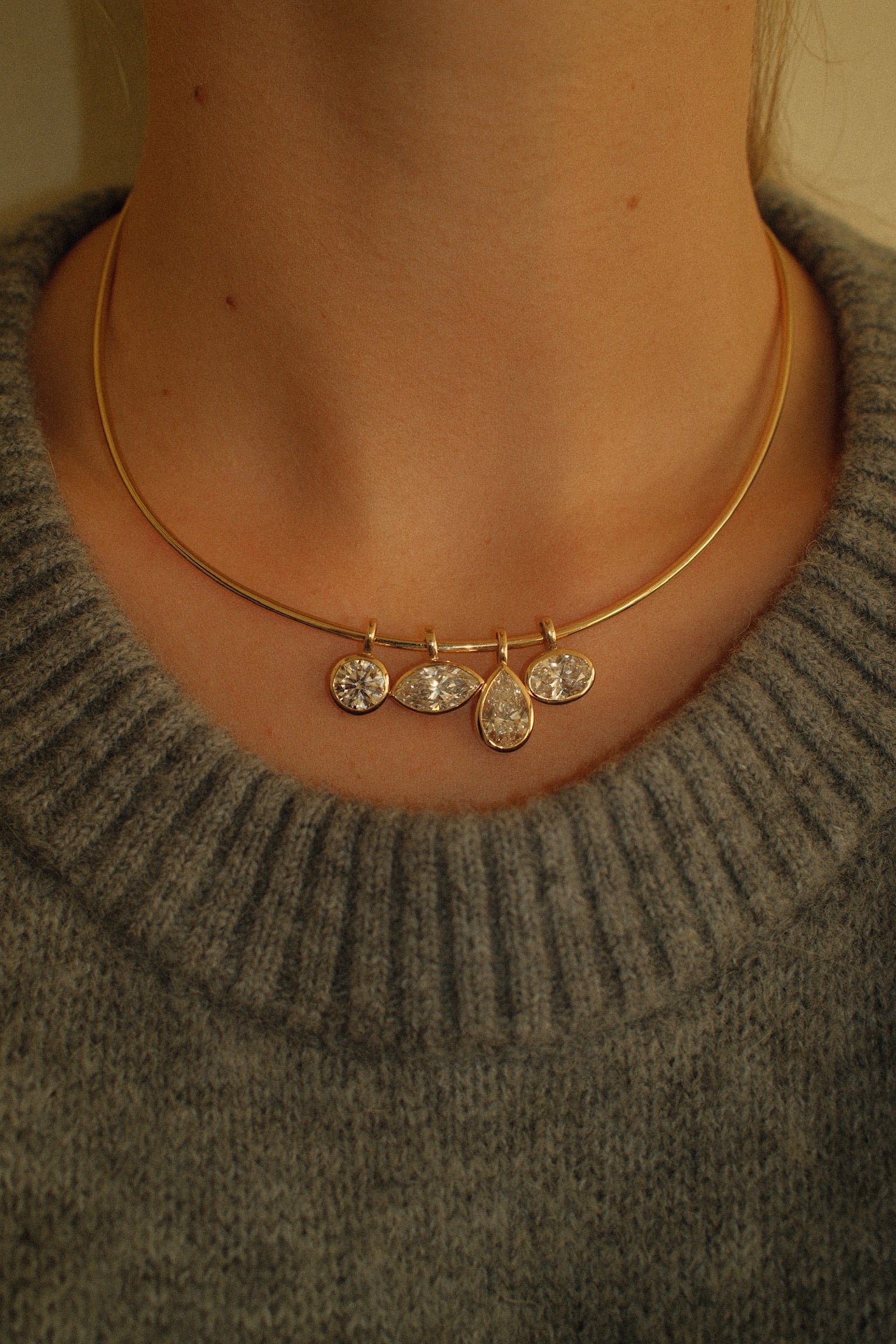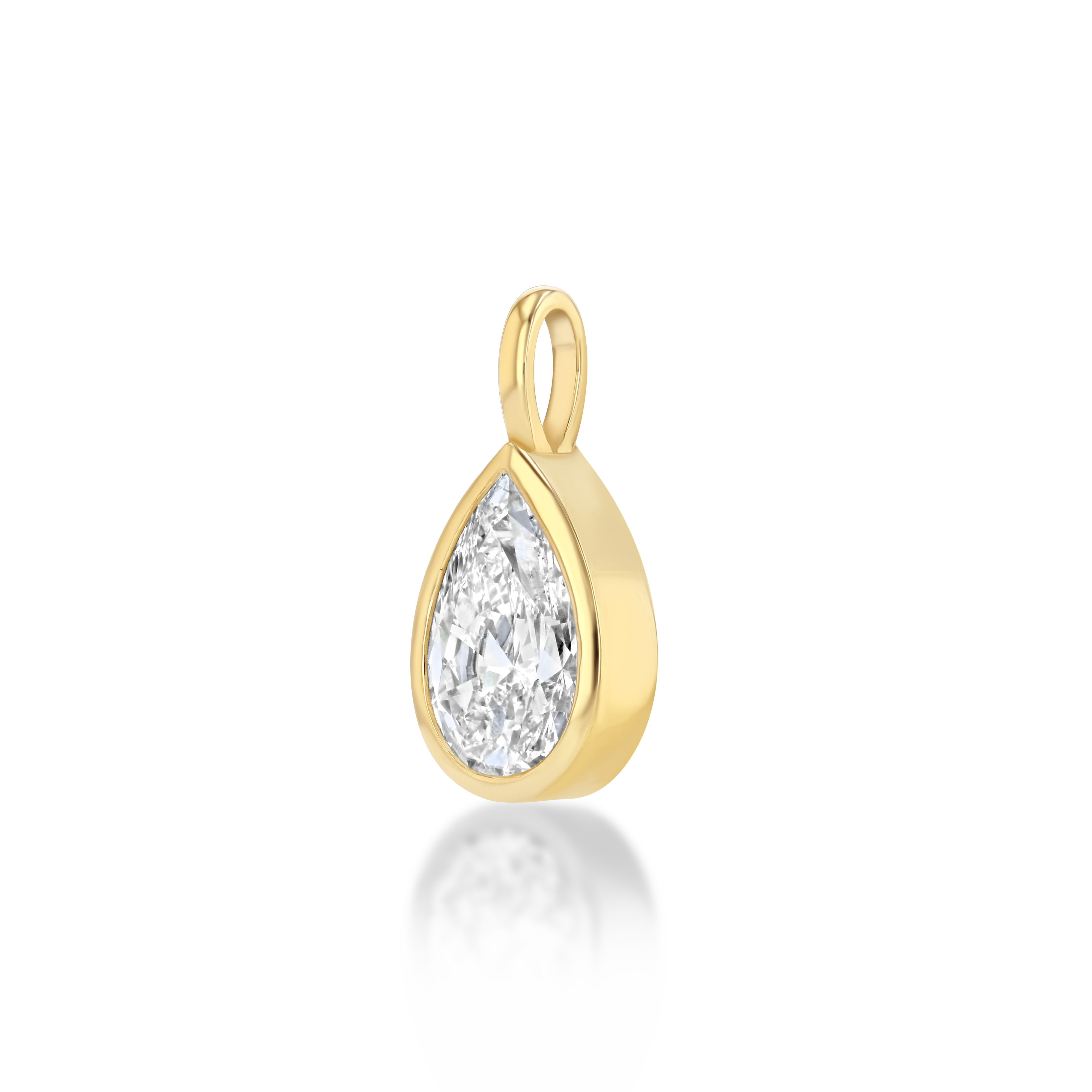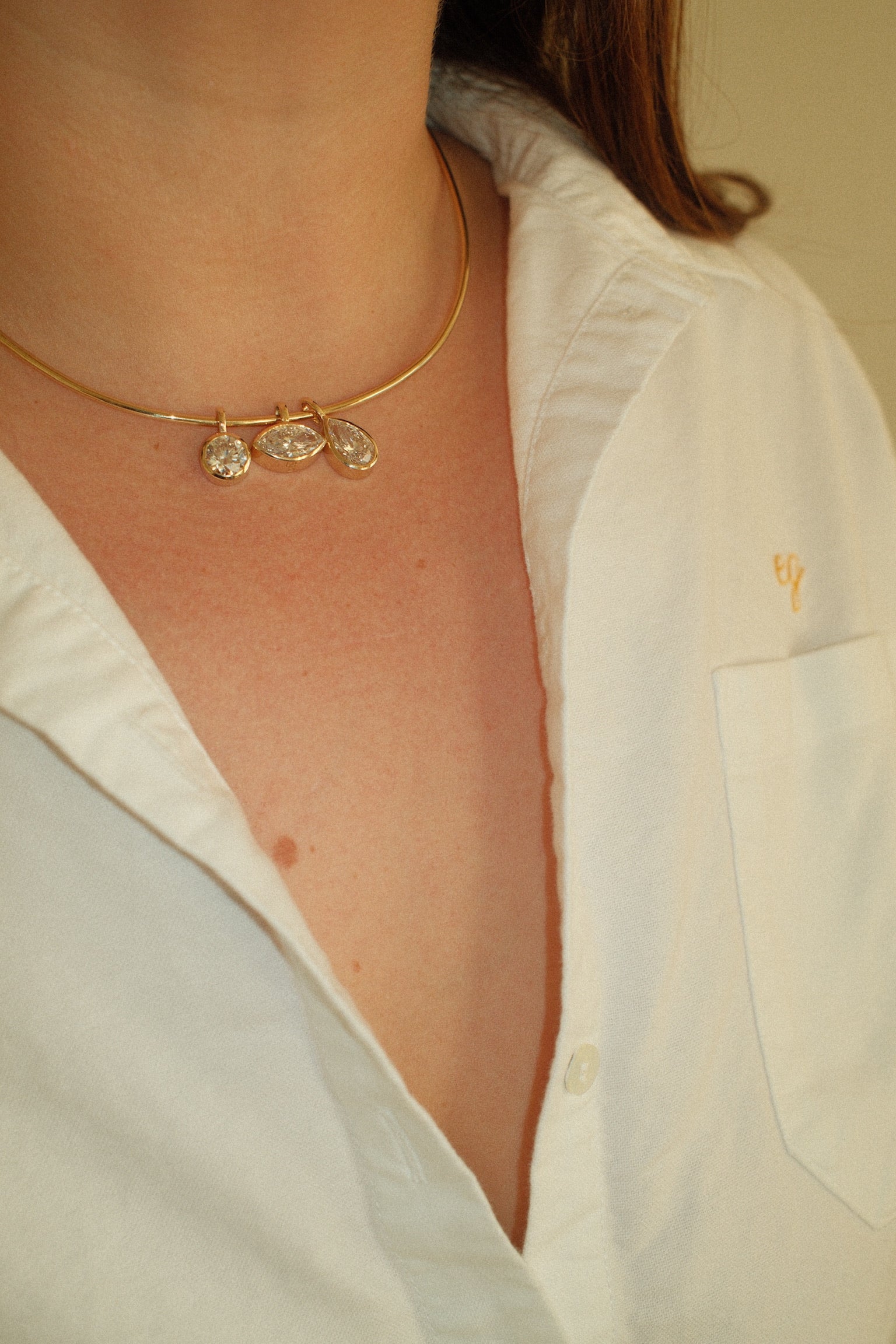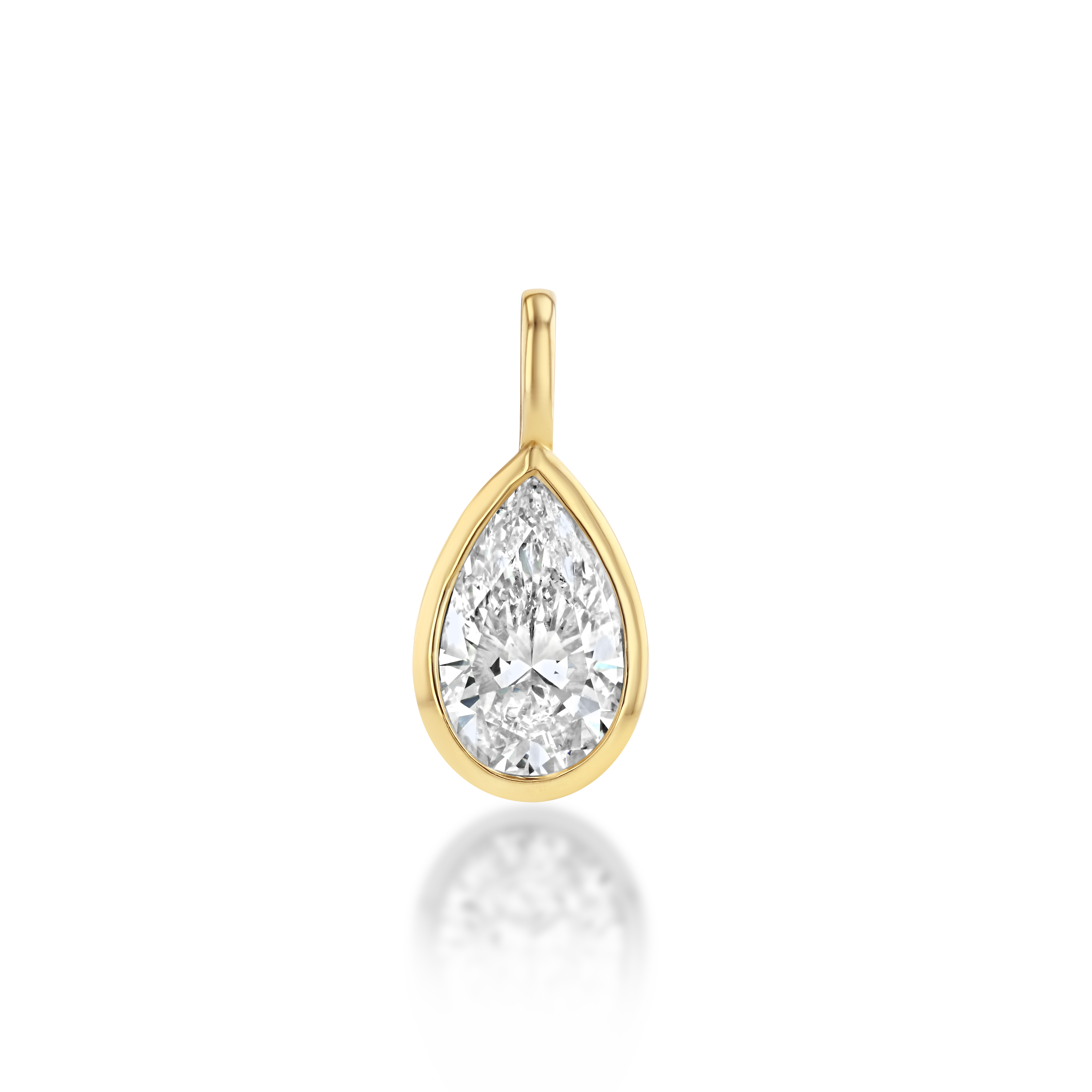 Meet our Real Fine Signature Bezel Diamond Drop. Crafted in 14k Gold and featuring a 2.5ctw VS1 F Pear Cultivated Diamond. Pairs perfectly with the Porter Chain or the RF Classic Choker.
