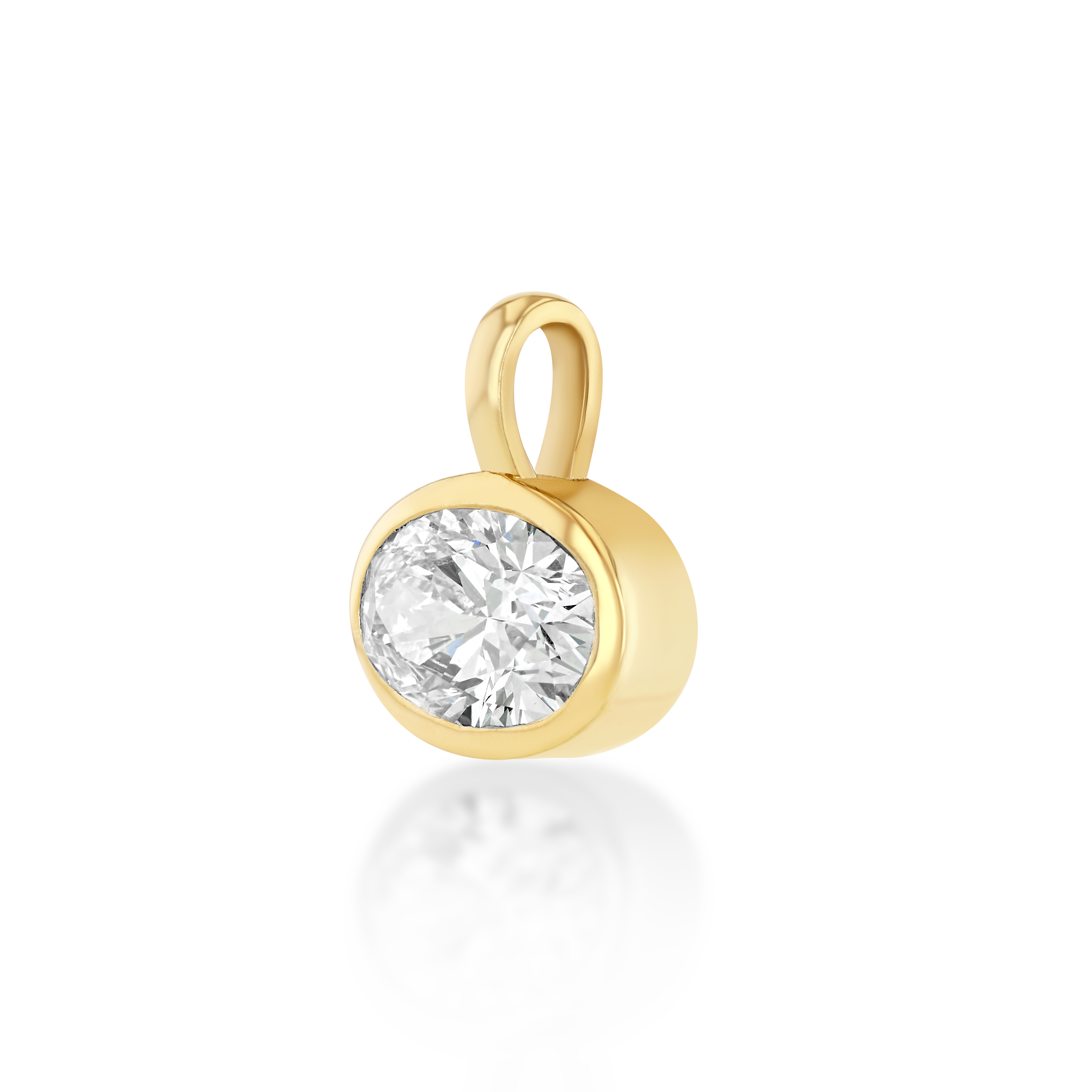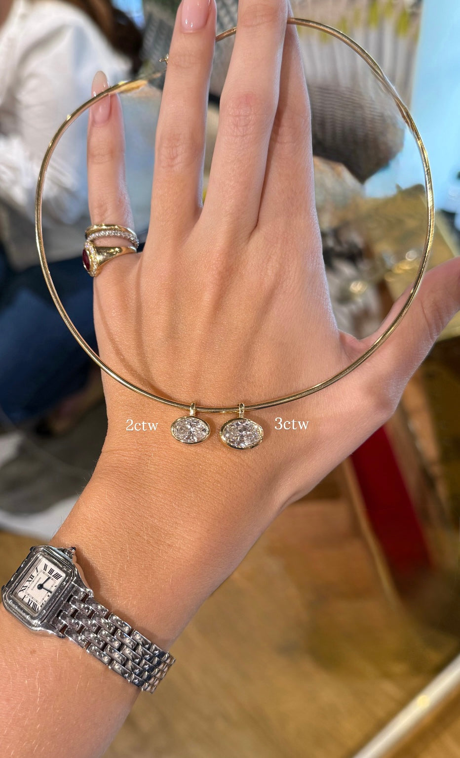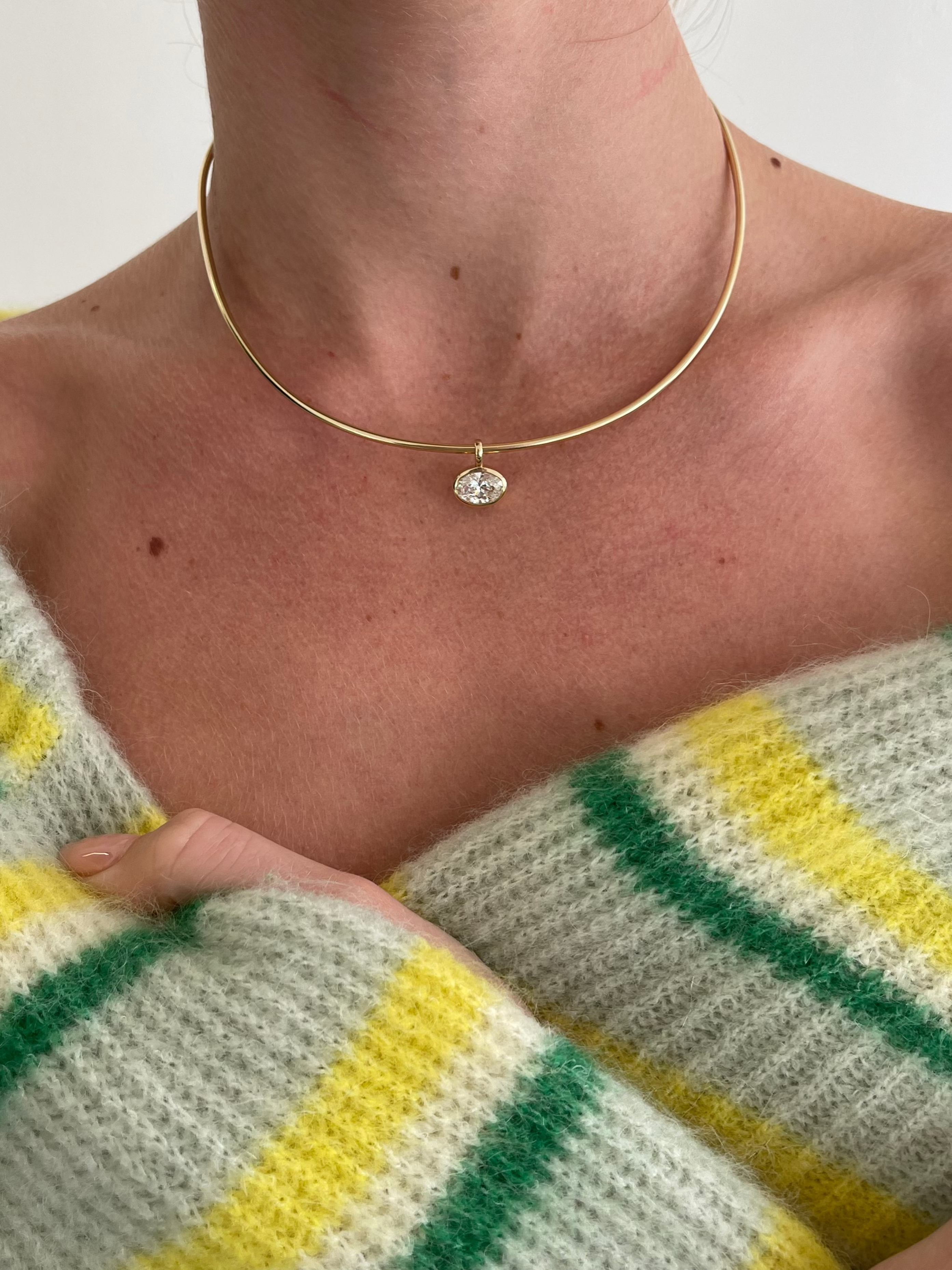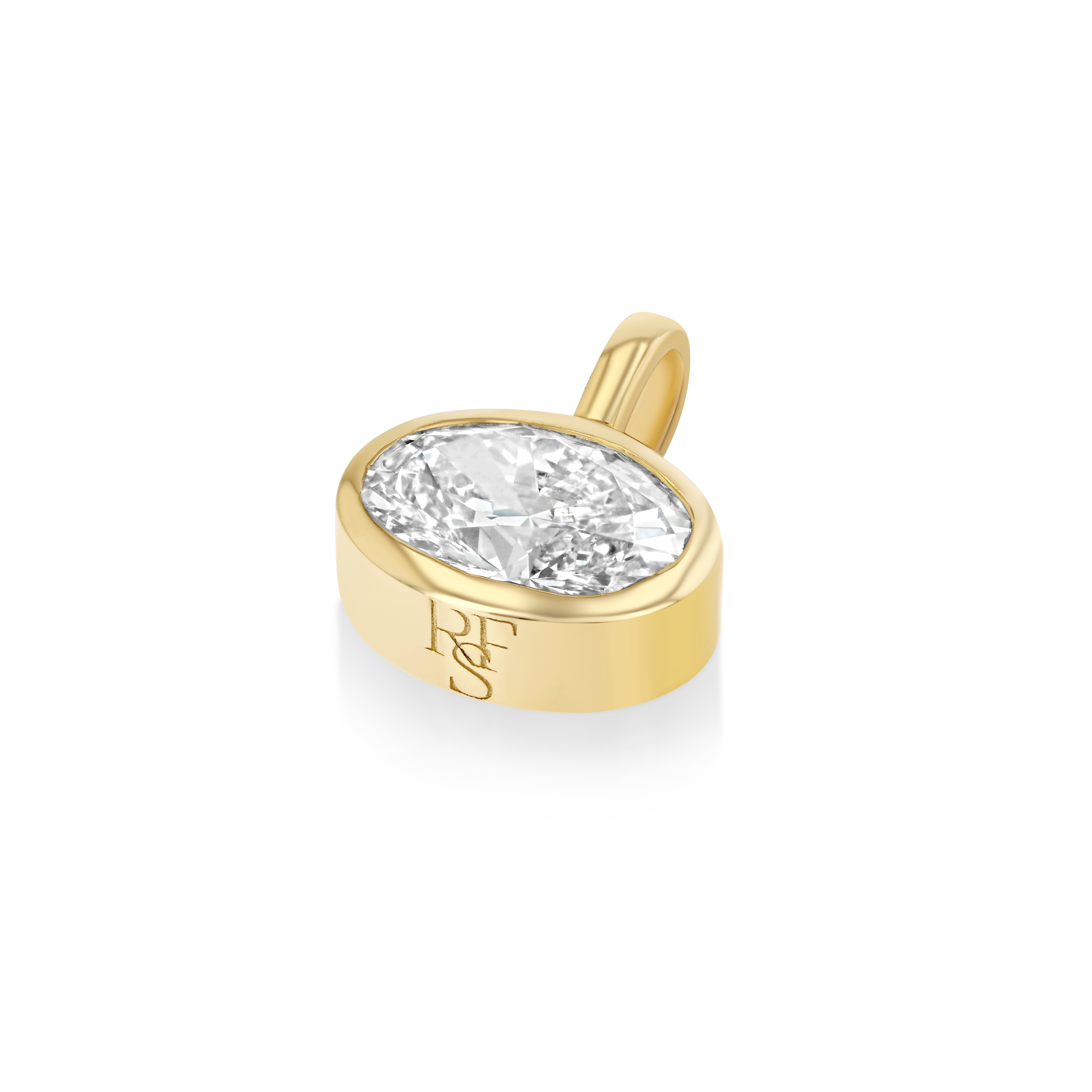 Meet our Real Fine Signature Diamond Bezel Drop. Crafted in 14k Gold and featuring a 2ctw or 3ctw VS1 F Oval Cultivated Diamond. Pairs perfectly with the Porter Chain or the RF Classic Choker.