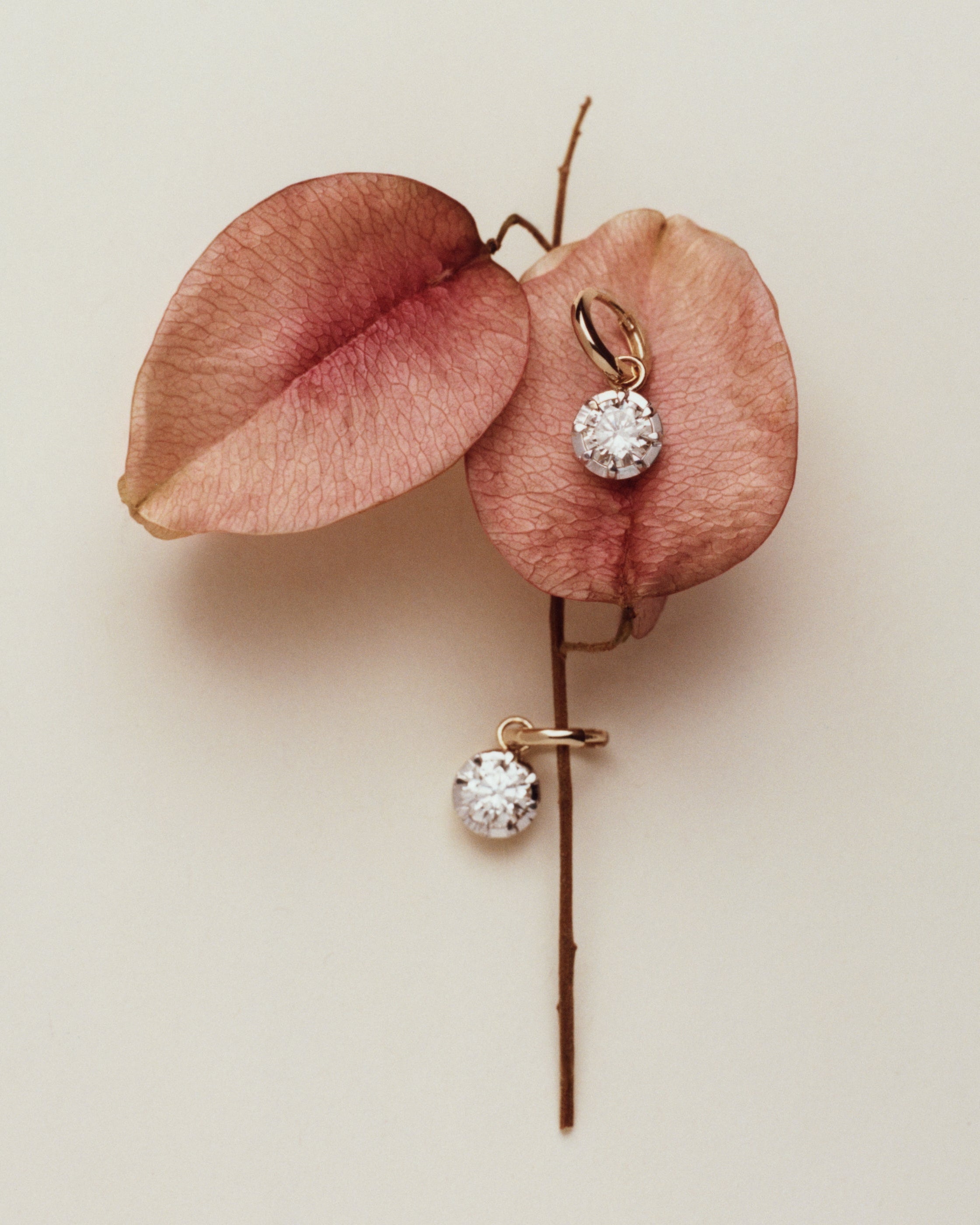 Introducing the Mega Georgians. Crafted in 14K Yellow Gold with a White Rhodium finish, these antique-inspired earrings pay homage to the Georgian Era, featuring a traditional Button-Back setting. Handcrafted in Los Angeles, each earring is set with a cultivated 1.5ct VS1 F Diamond. They are definitely a showstopper.