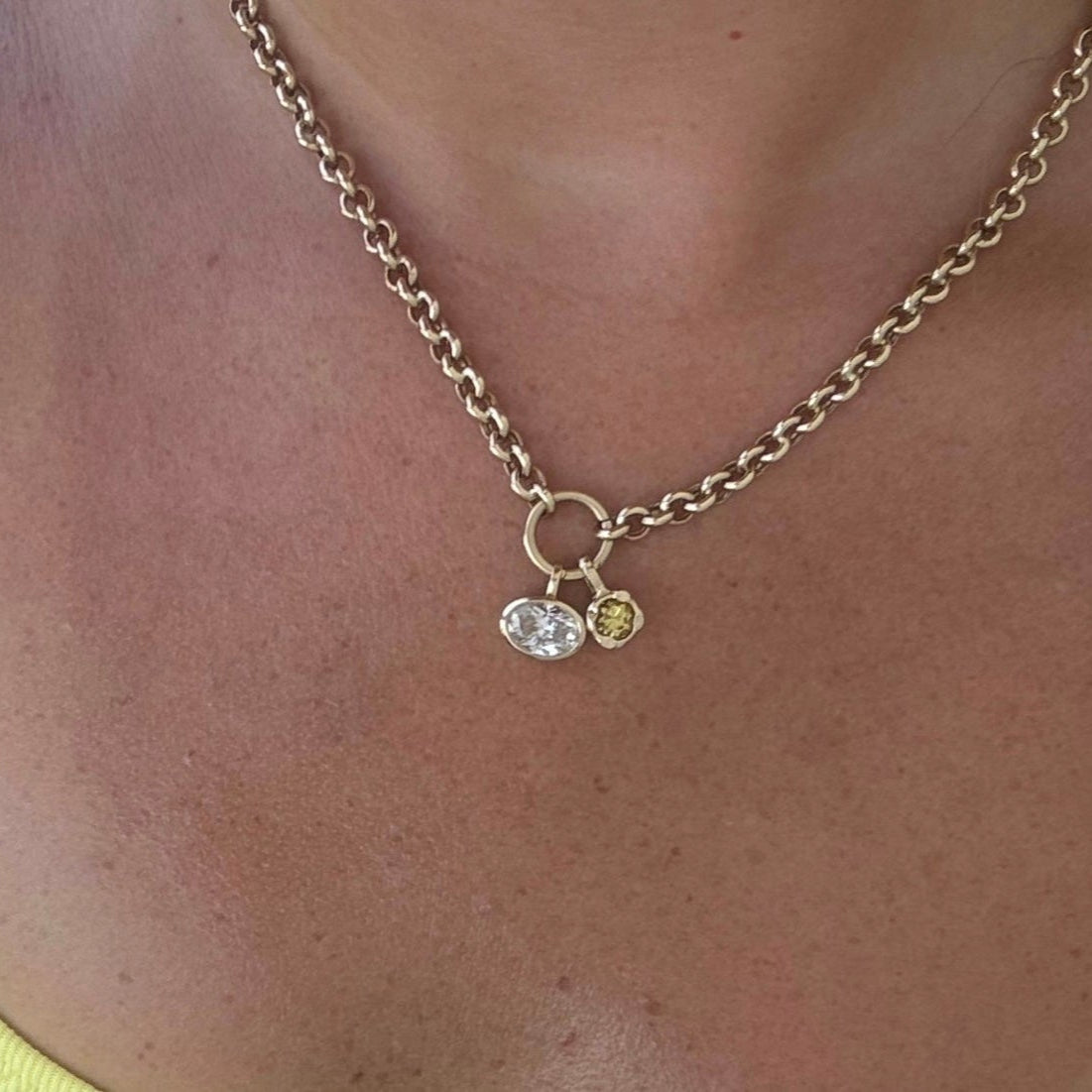 From our Golden Hour collection, this charm features a yellow zircon set in subtly hammered 14k gold. The soft, organic finish catches the light with ease. Designed to pair with our Hampton Necklace or Anklet.