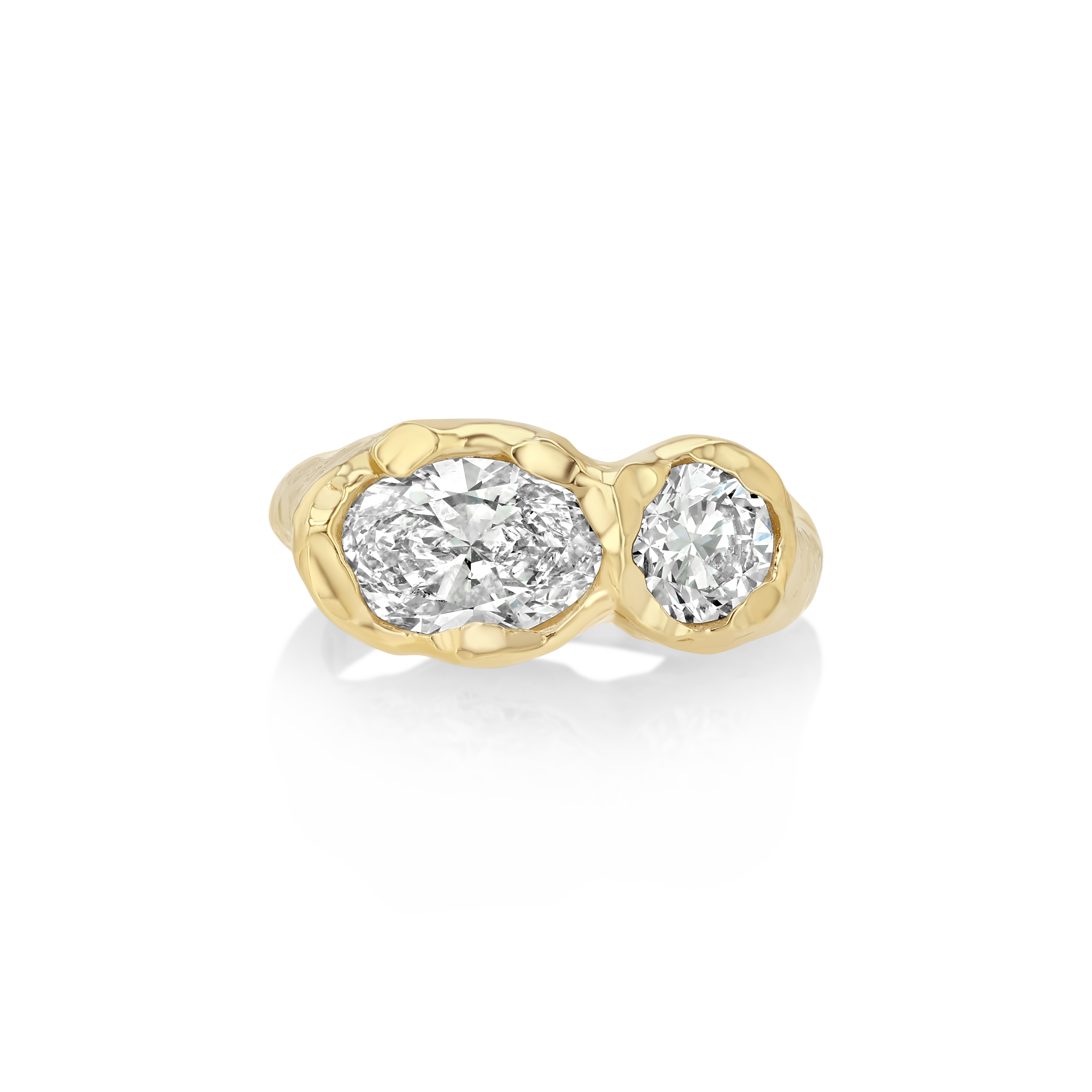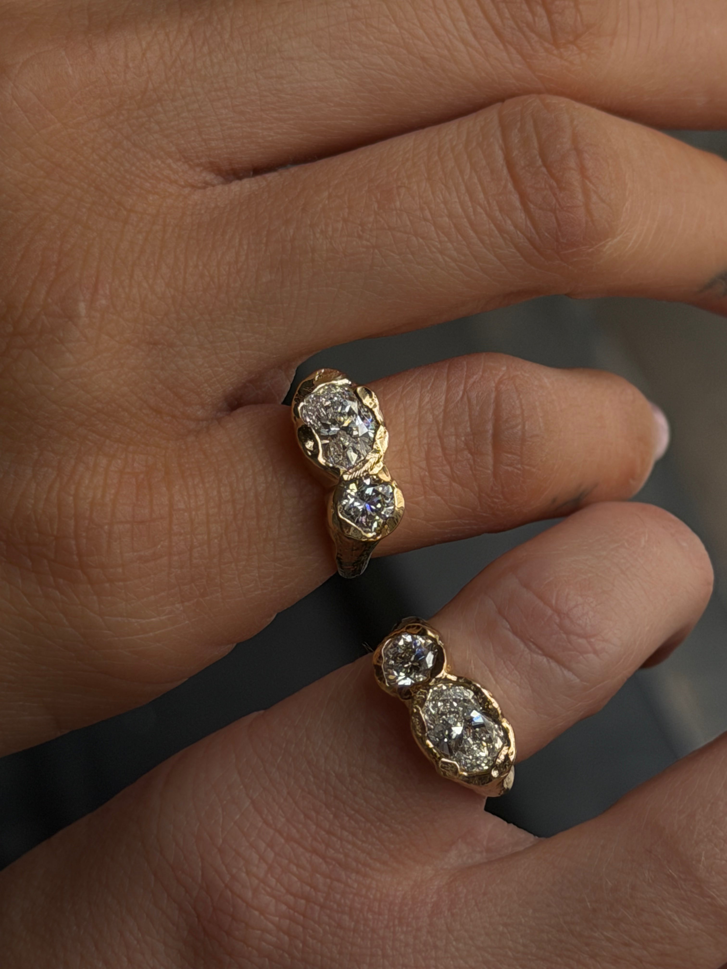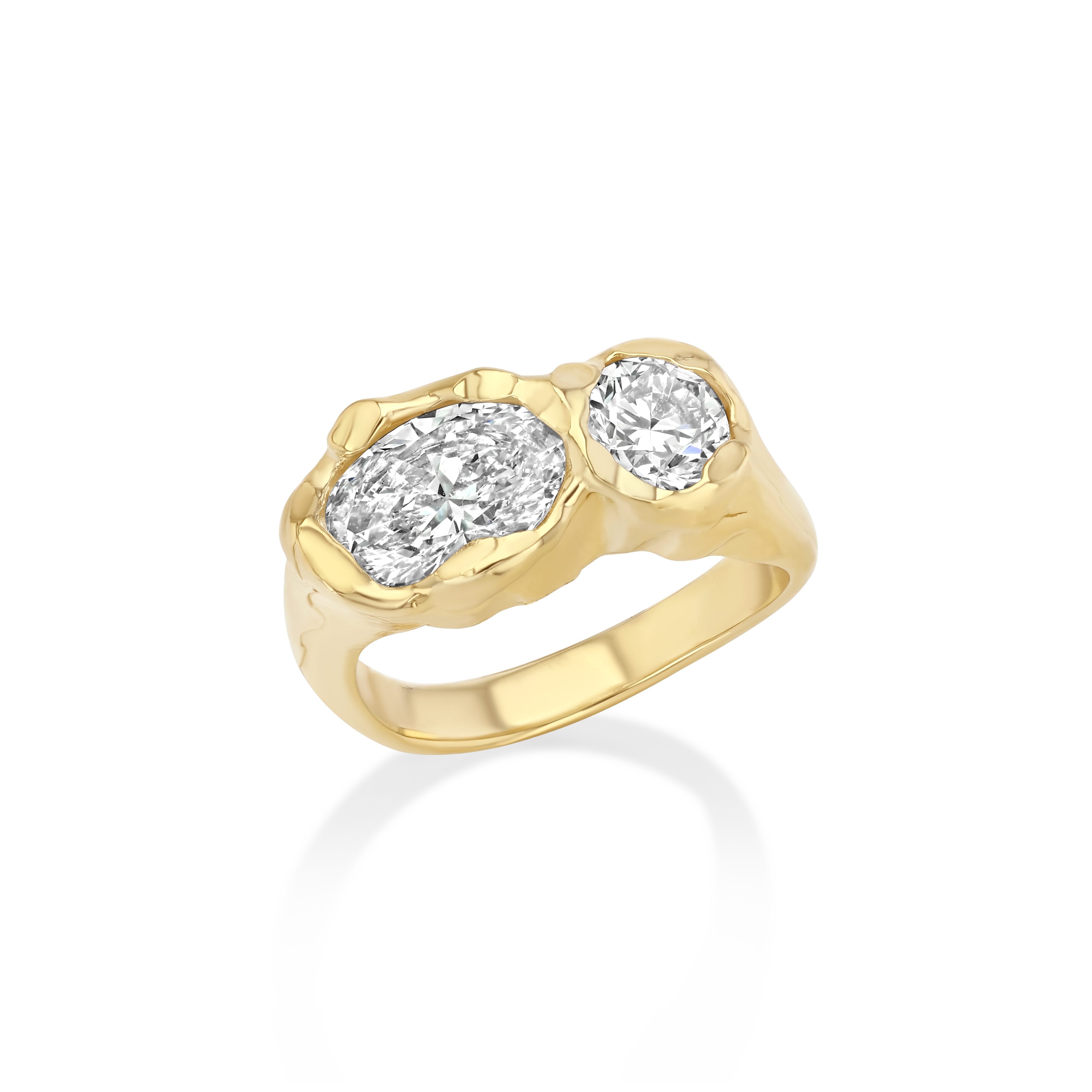 Set with a round and oval lab-grown diamond for a combined total of 2ct, Our Golden Hour Duo Ring looks good on any finger (finally not just a pinky ring!) but it does look pretty perfect on the pinky too!