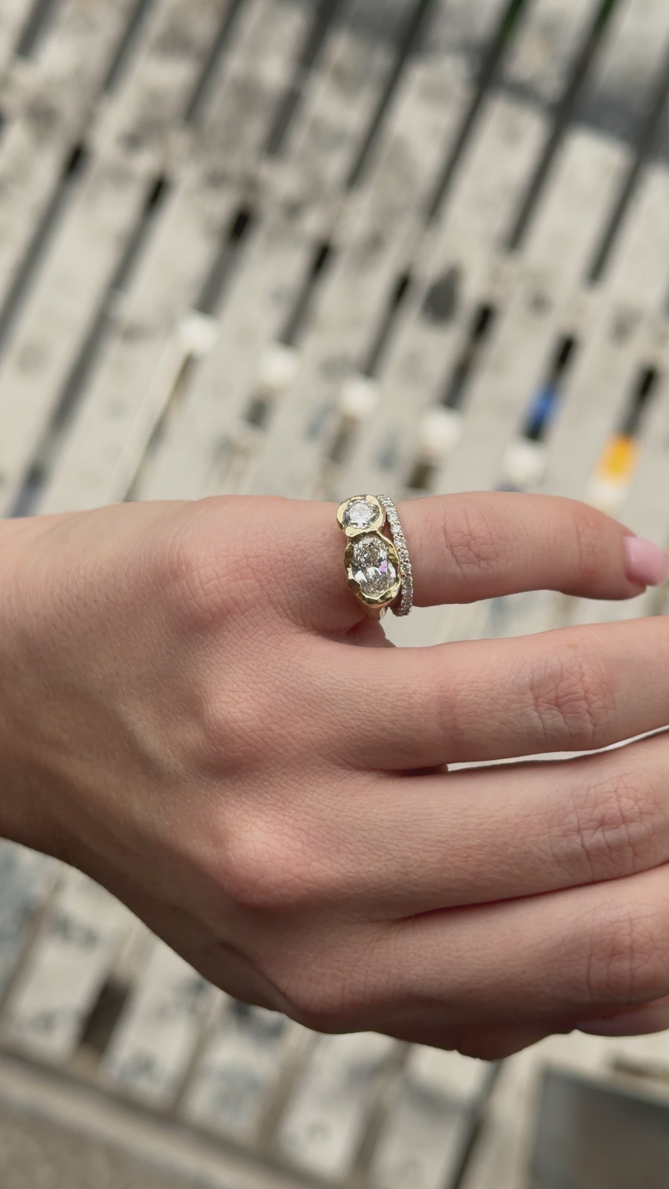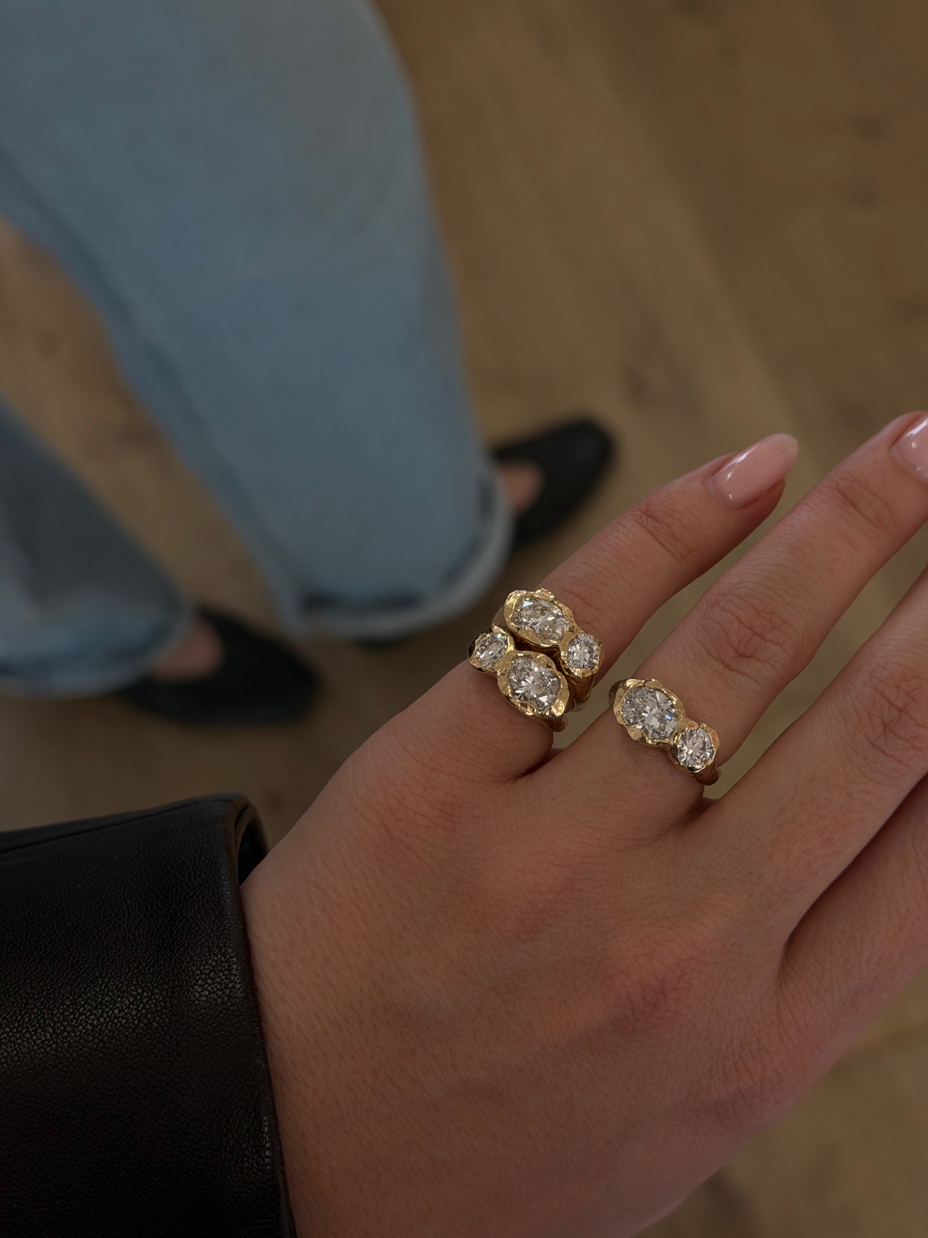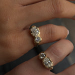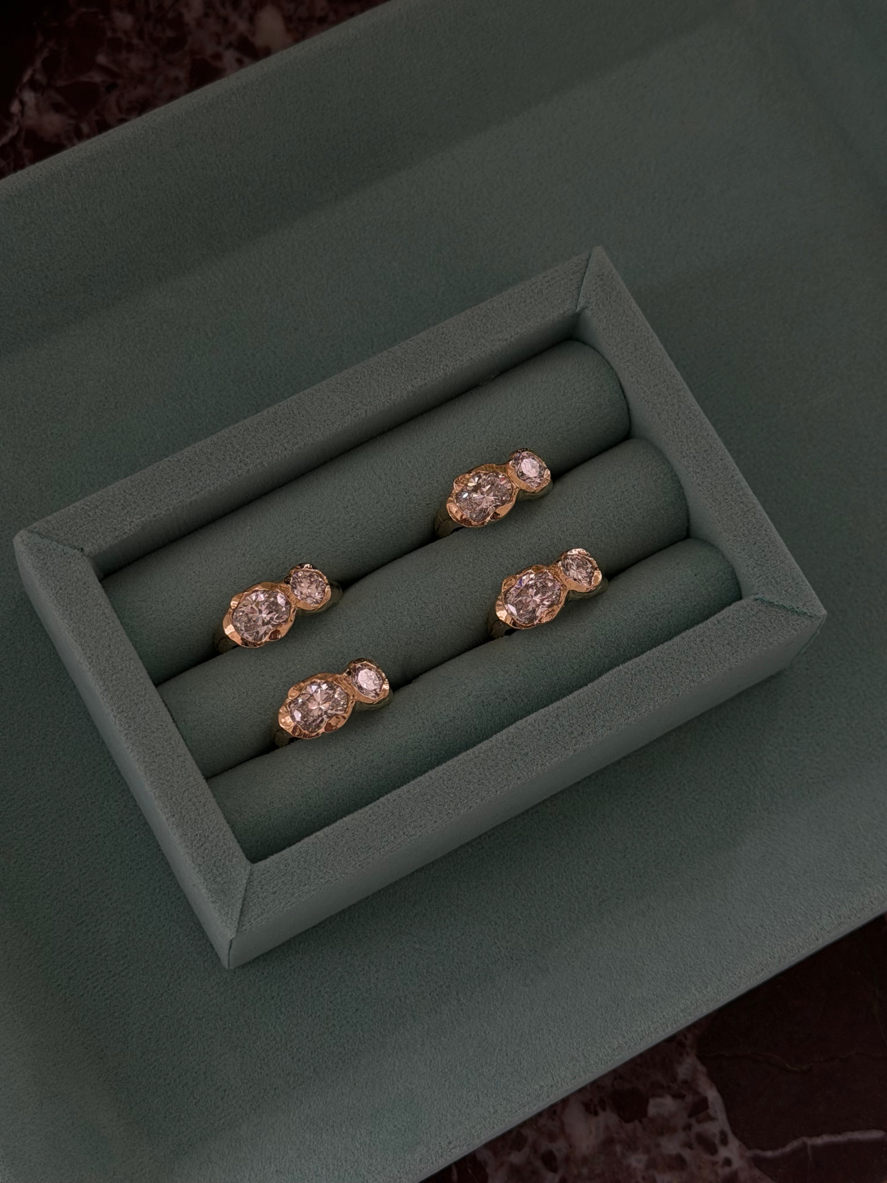 Set with a round and oval lab-grown diamond for a combined total of 2ct, Our Golden Hour Duo Ring looks good on any finger (finally not just a pinky ring!) but it does look pretty perfect on the pinky too!