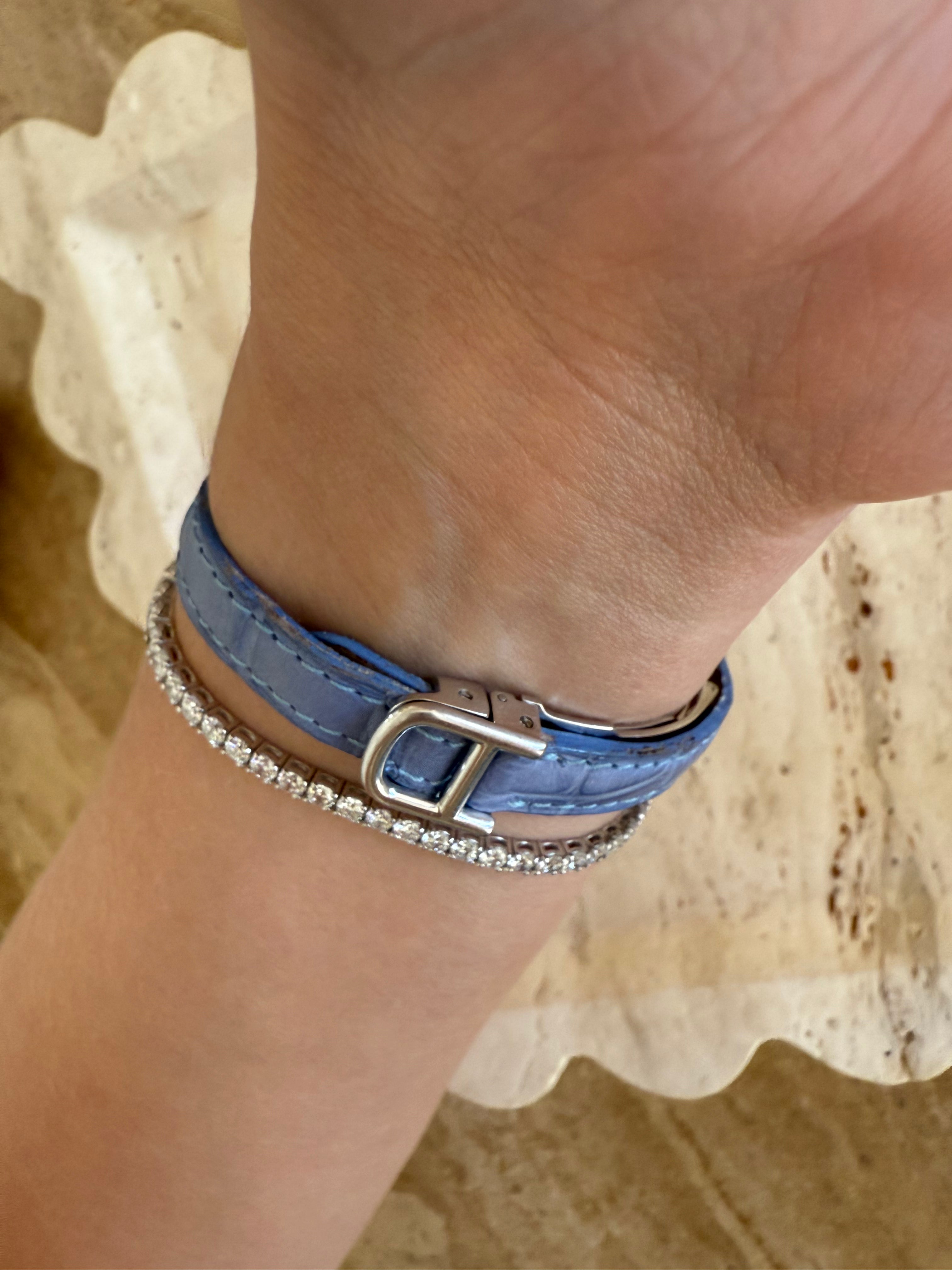 Original Cornflower Blue Leather Strap with Original 18k White Gold Deploy Clasp.
