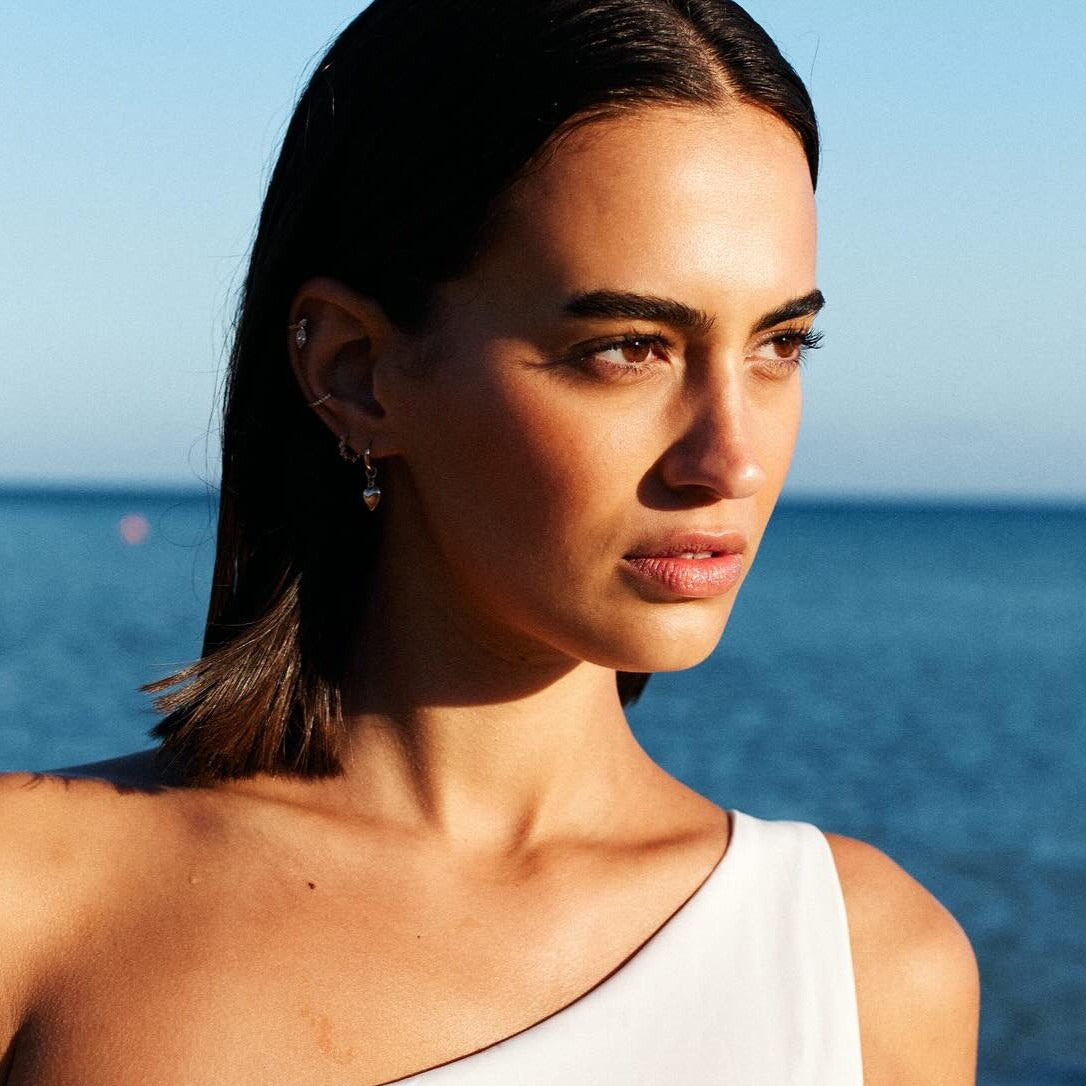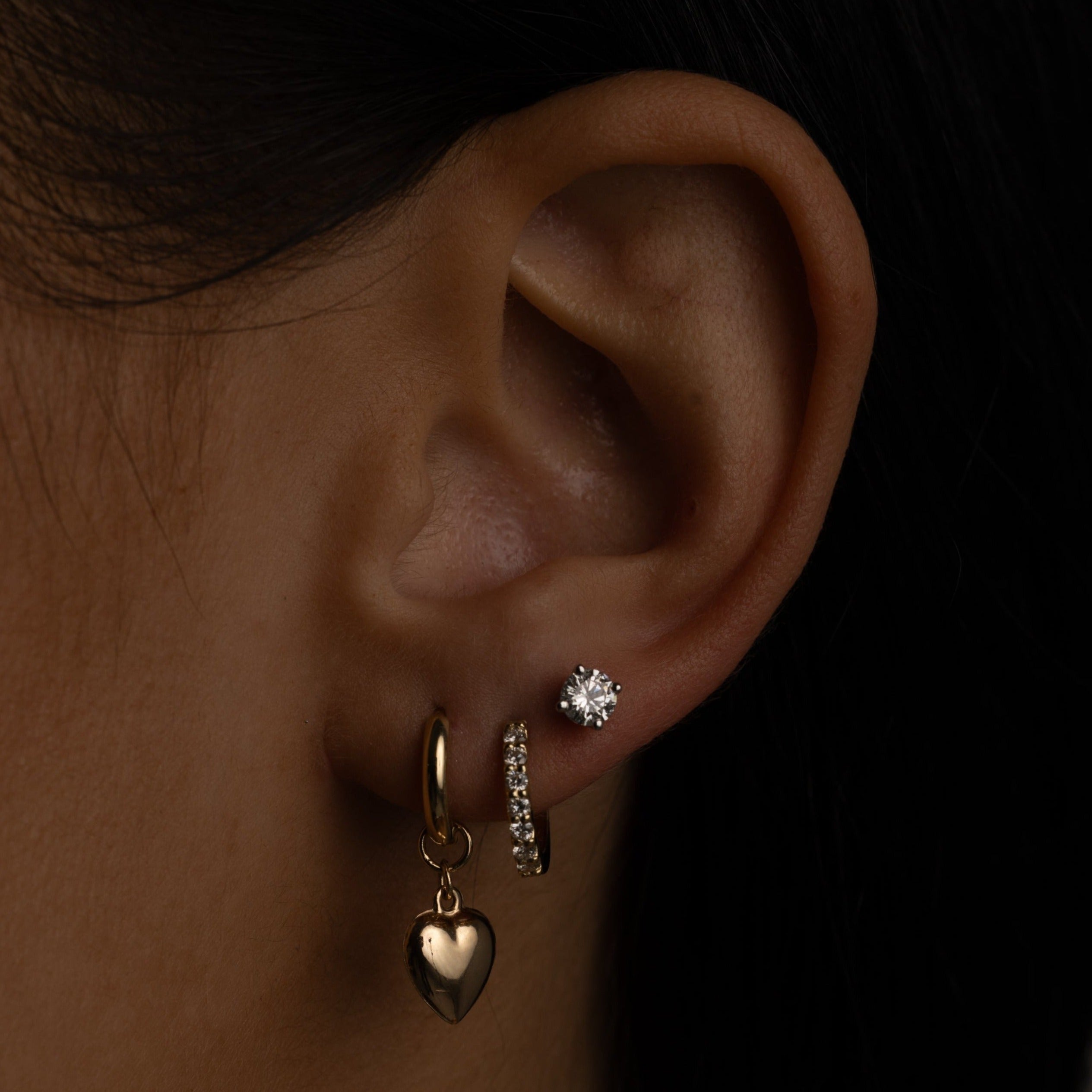 The Nina Heart Huggies feature our signature puffy heart in a petite form. These cute little hearts catch light with movement, are lightweight and look beautiful stacked with our Classic Diamond Huggies or Diamond Studs.