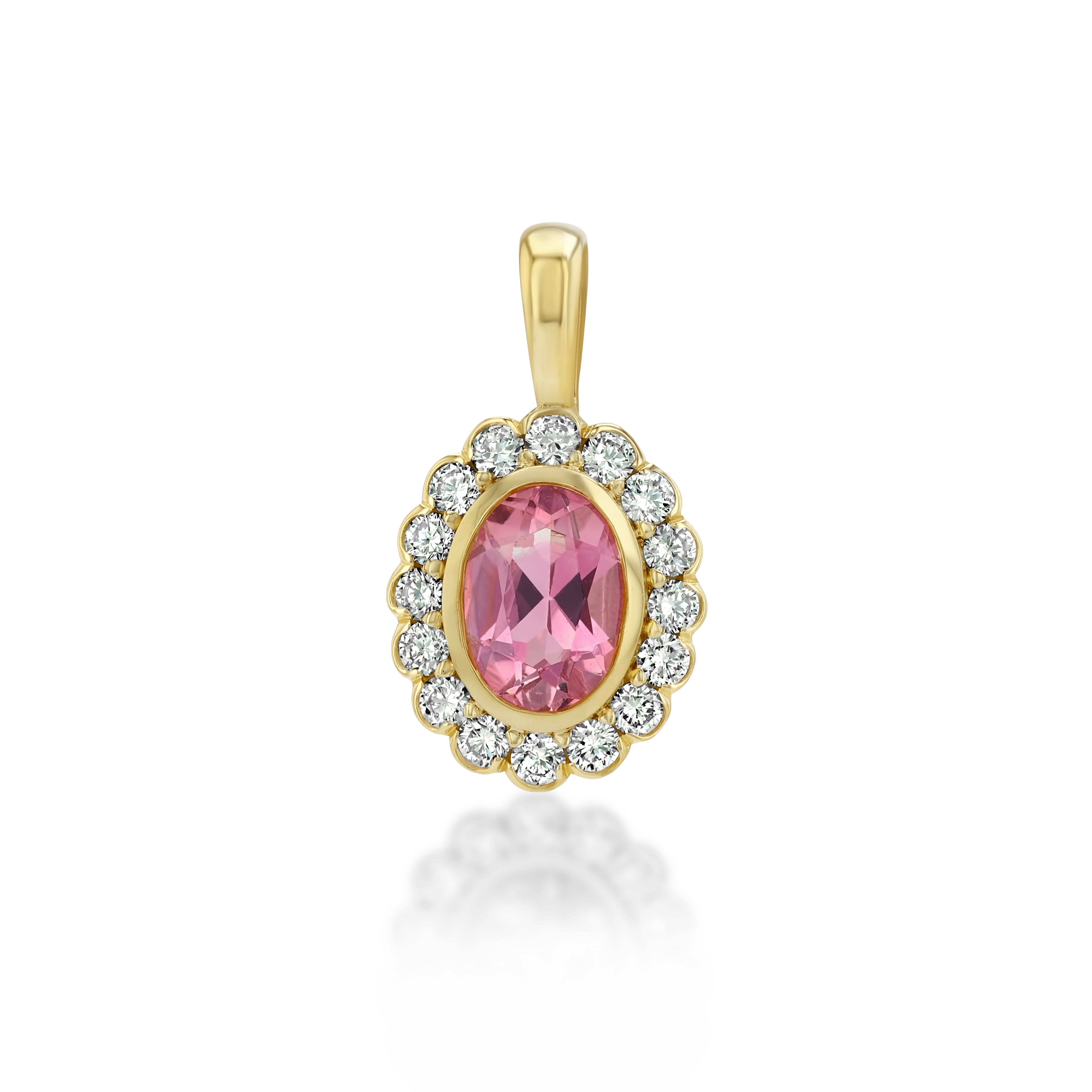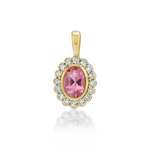 Meet the Real Fine Heirloom Pendant in Rosy. Inspired by our most loved Heirloom Signet Ring, this pendant is crafted in 14K Yellow Gold, featuring a .75ctw Natural Pink Tourmaline and surrounded by 16 Natural Brilliant Round Diamonds. Style it with our Sloane Chain or Porter Chain.